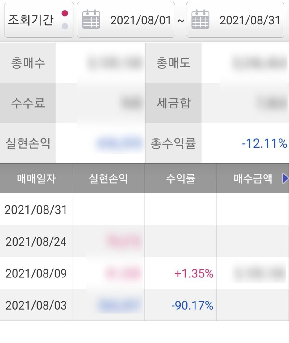 매매일 20일 기준에서 3일을 매수/매도를 했는데, 헉.. 1종목이 상폐이전 매매정리