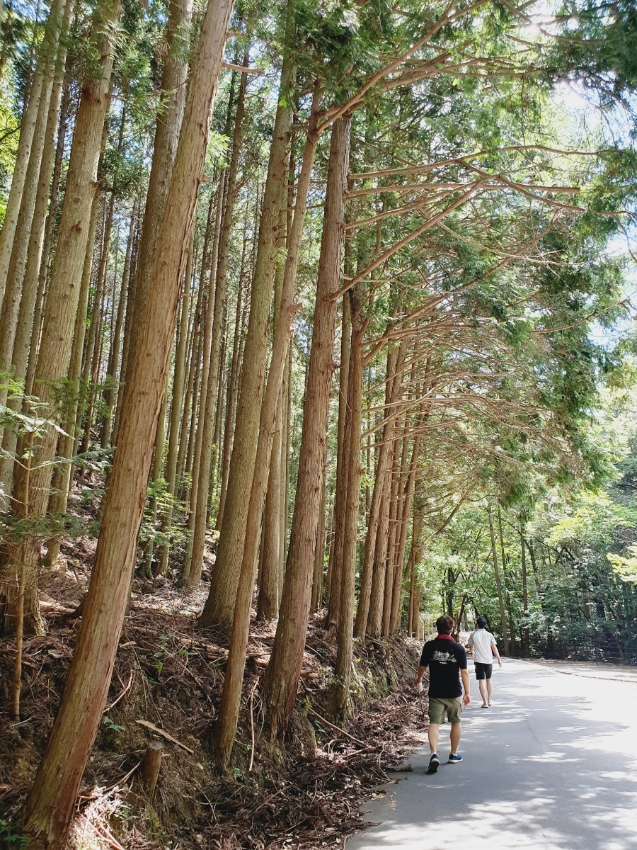 아침 먹고, 전망대 들러서 잠시 대마도 섬들을 보고 사진도 찍고 삼나무와, 편백이 많은 산책로를 따라서 좀 걸어봅니다