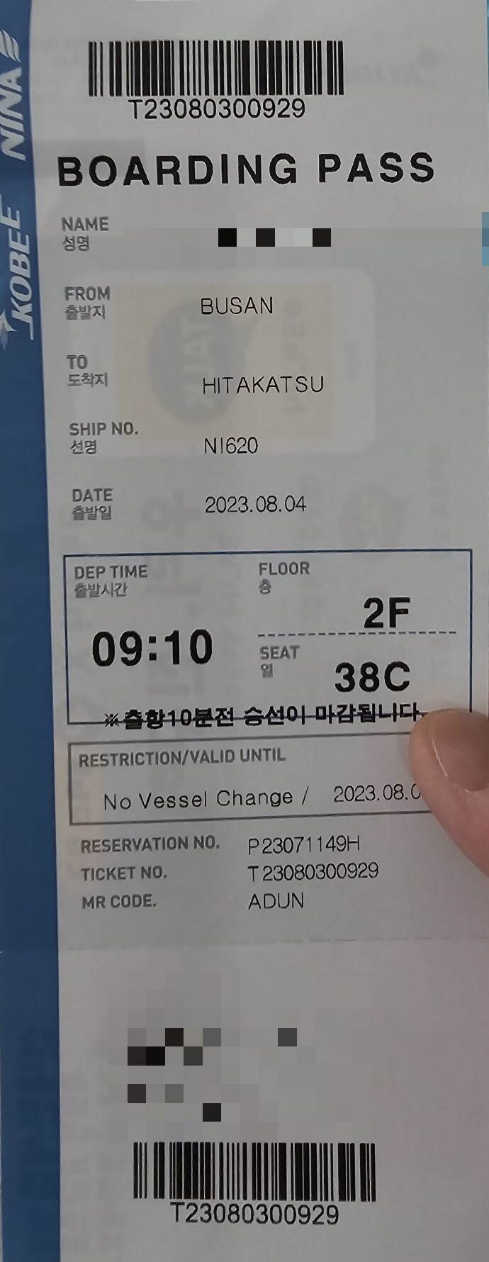 이제 배 타고, 짧은 1박 2일을 보내고 다시 한국으로 돌아옵니다