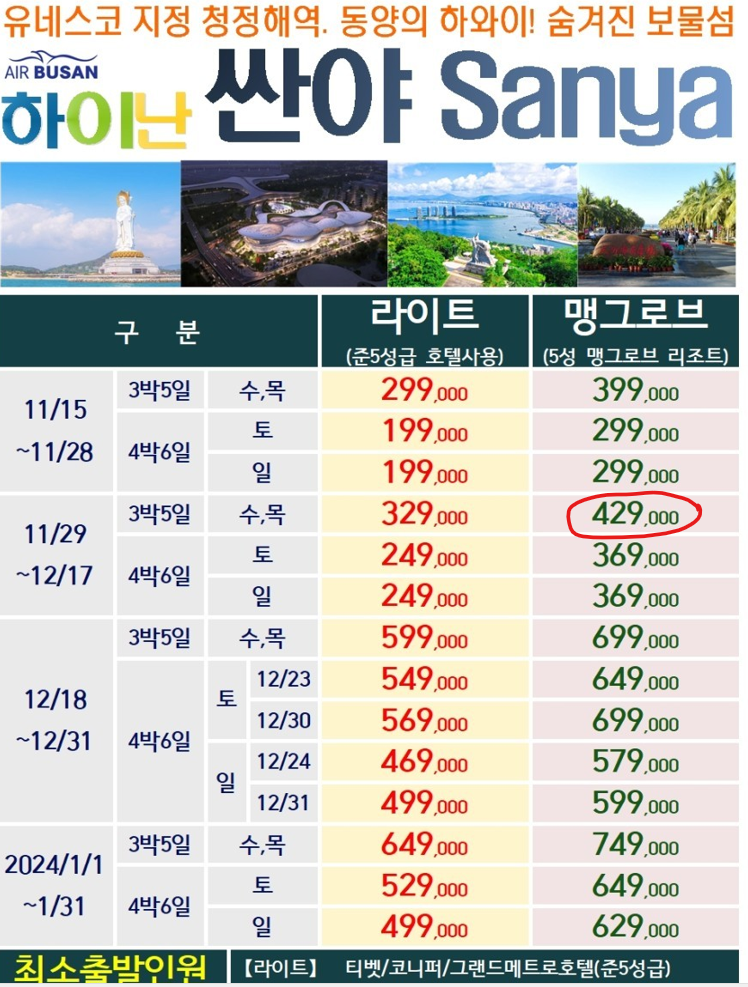 하이난 패키지 비용