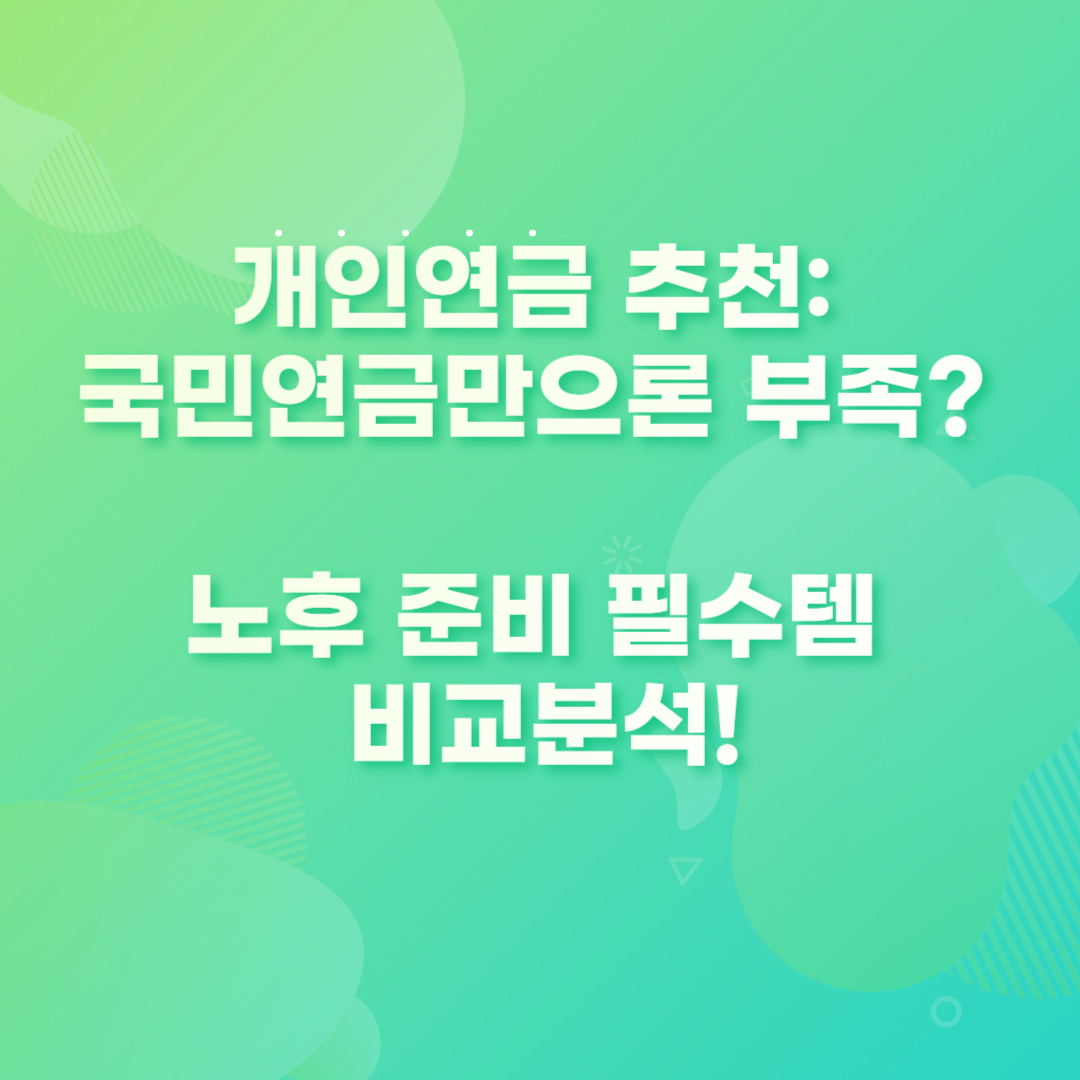 개인연금 추천: 국민연금만으론 부족? 노후 준비 필수템 비교분석!