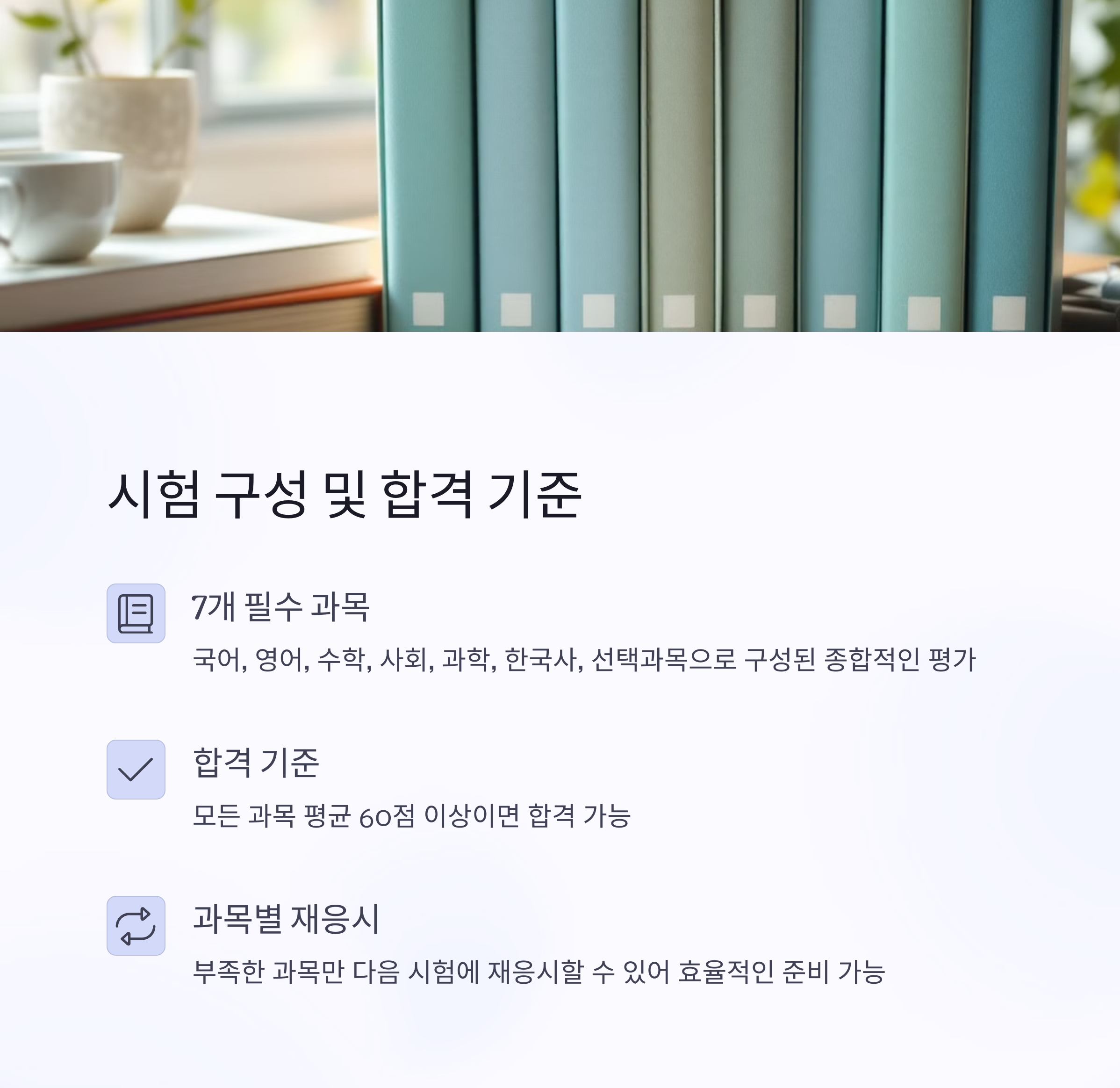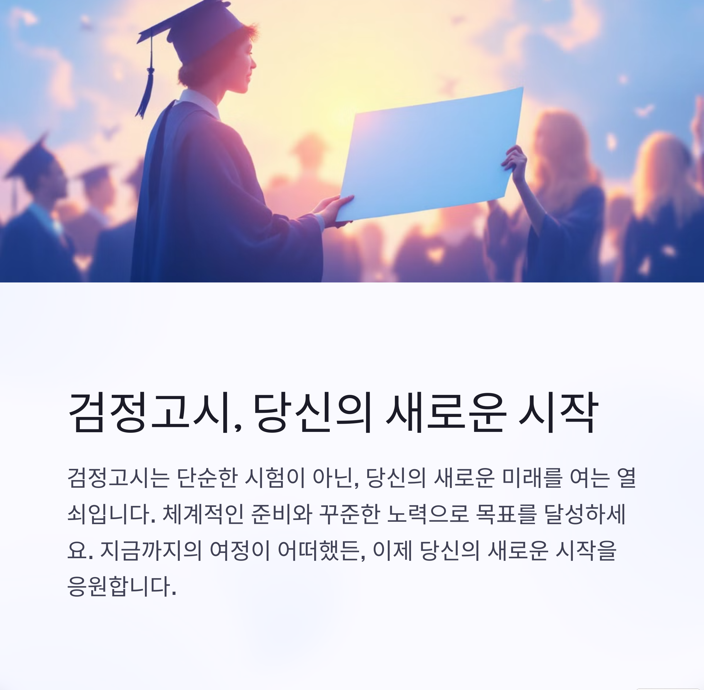 | 검정고시 합격률 | 평균 85.3%의 높은 합격률을 보이며, 많은 응시자들이 성공적으로 학력을 인정받고 있습니다. |