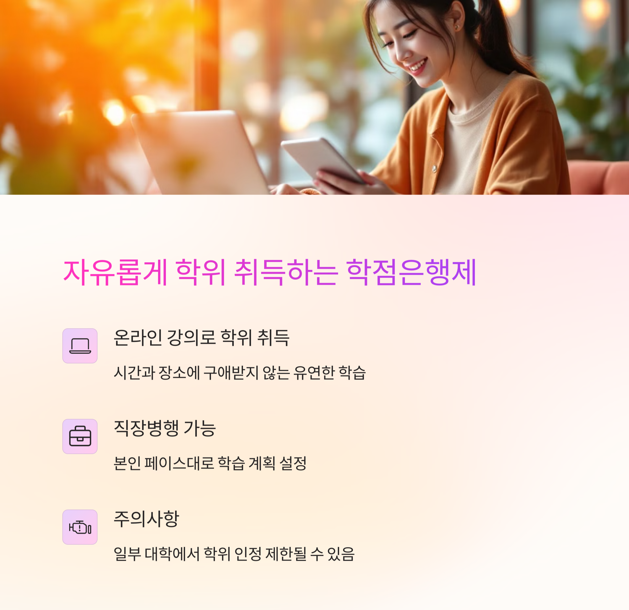 - 학점 인정: 기존 대학에서 이수한 학점을 인정받아 학위 취득이 수월함
