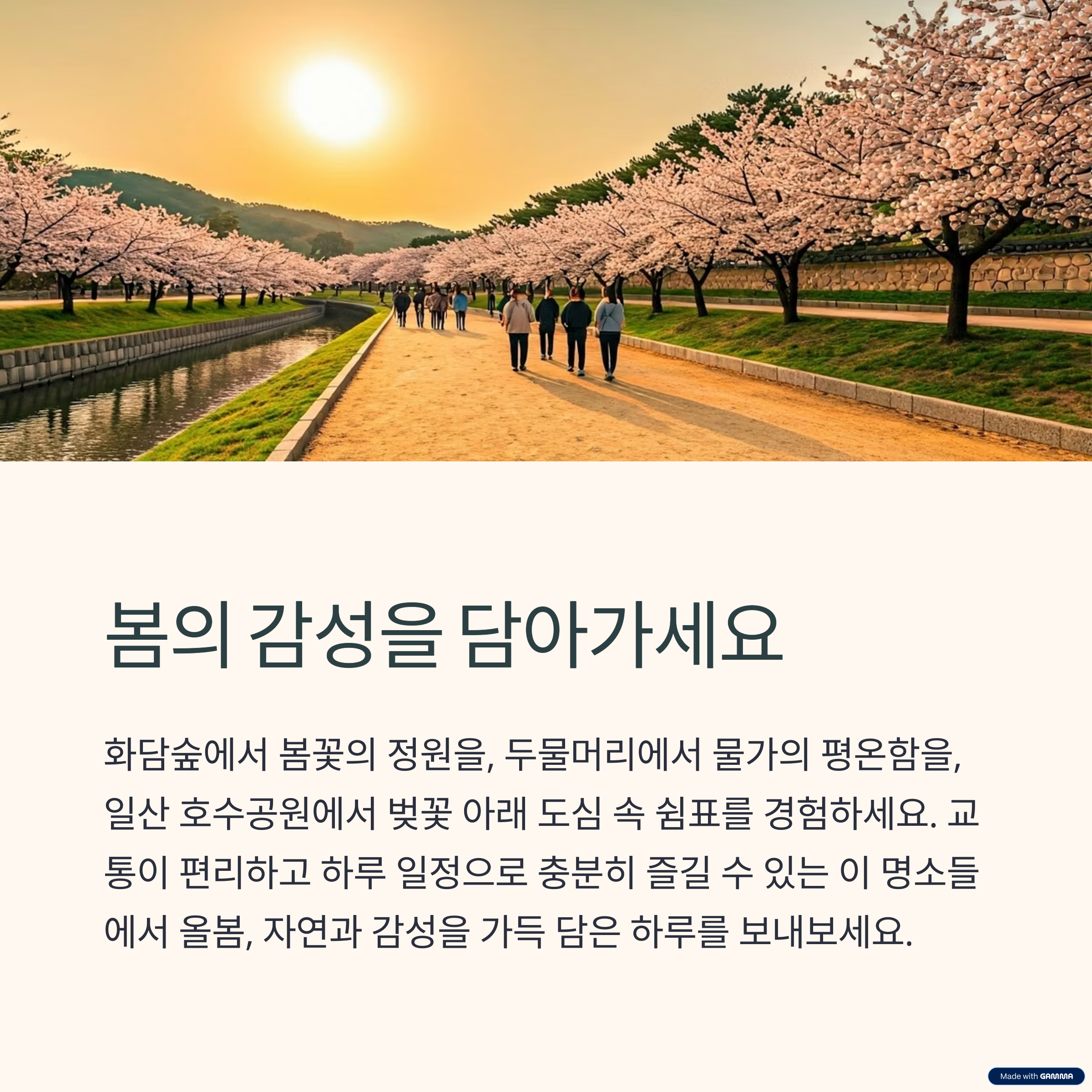 경기도에는 자연과 꽃, 감성 산책로가 조화를 이루는 봄 여행지가 곳곳에 있습니다.
