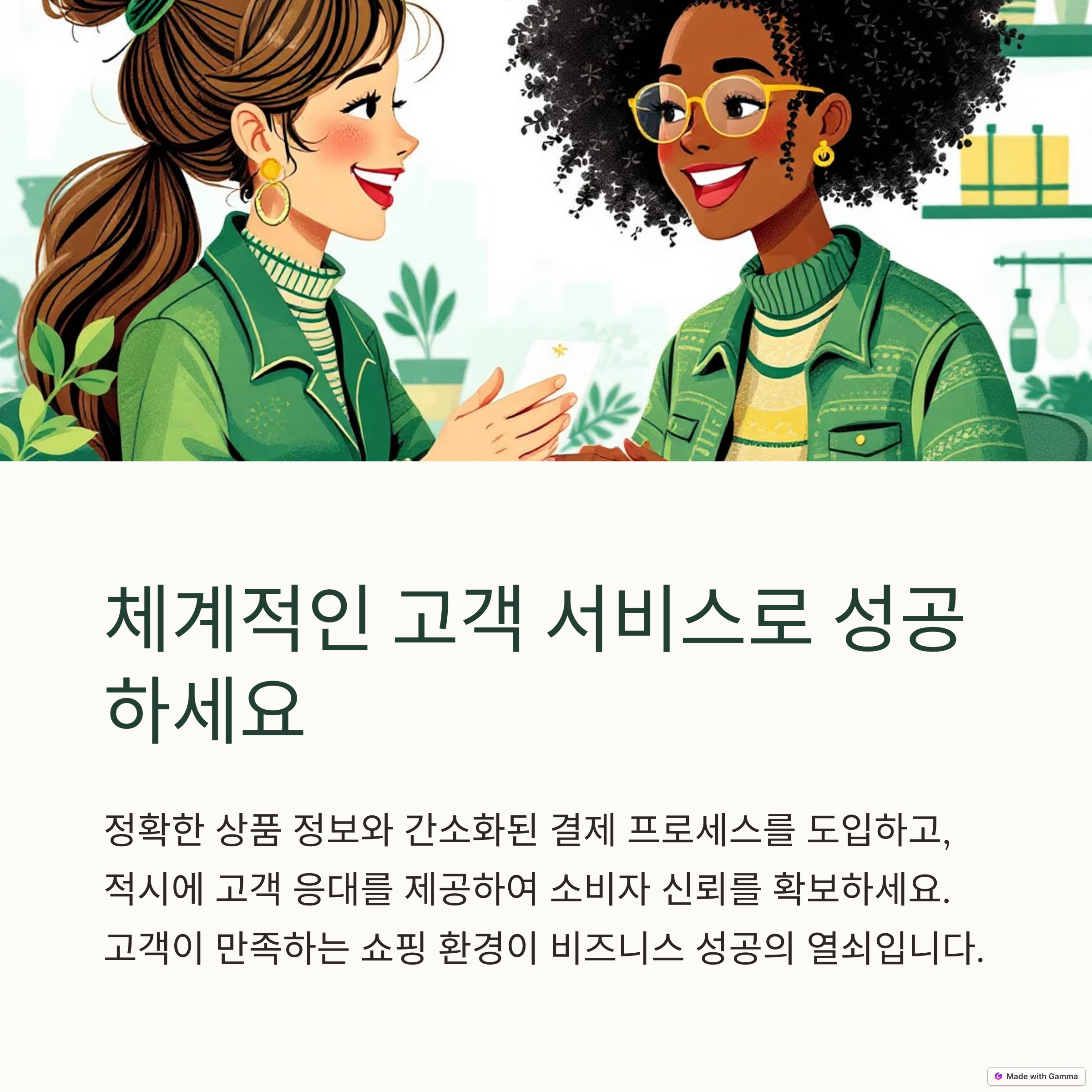 고객 응대 매뉴얼의 실행은 쇼핑몰 운영에 큰 긍정적 영향을 미칩니다.
