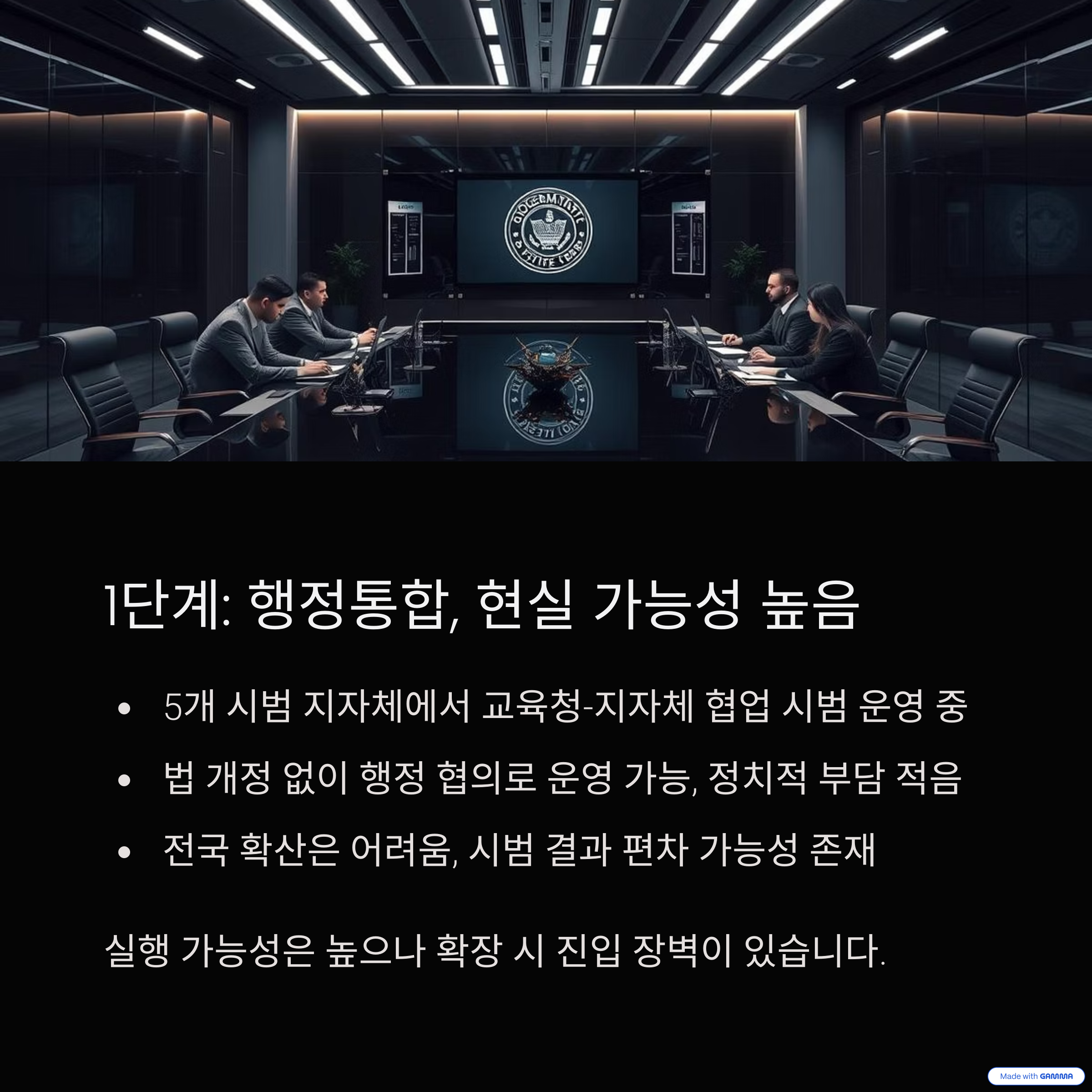 1단계 – 시범사업 중심 행정통합, 현실 가능성: ‘높음’