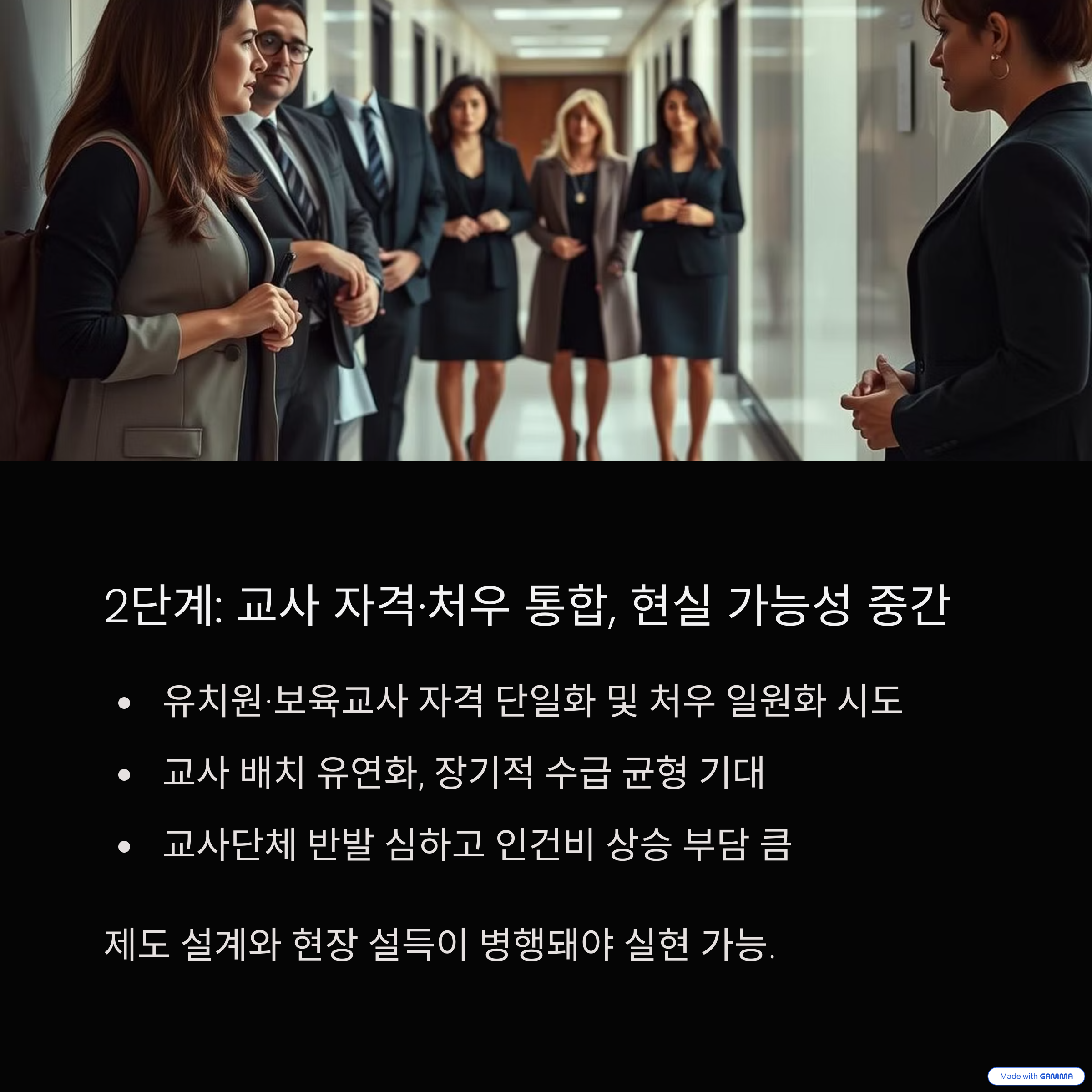 2단계 – 교사 자격 통합 및 처우 일원화, 현실 가능성: ‘중간’