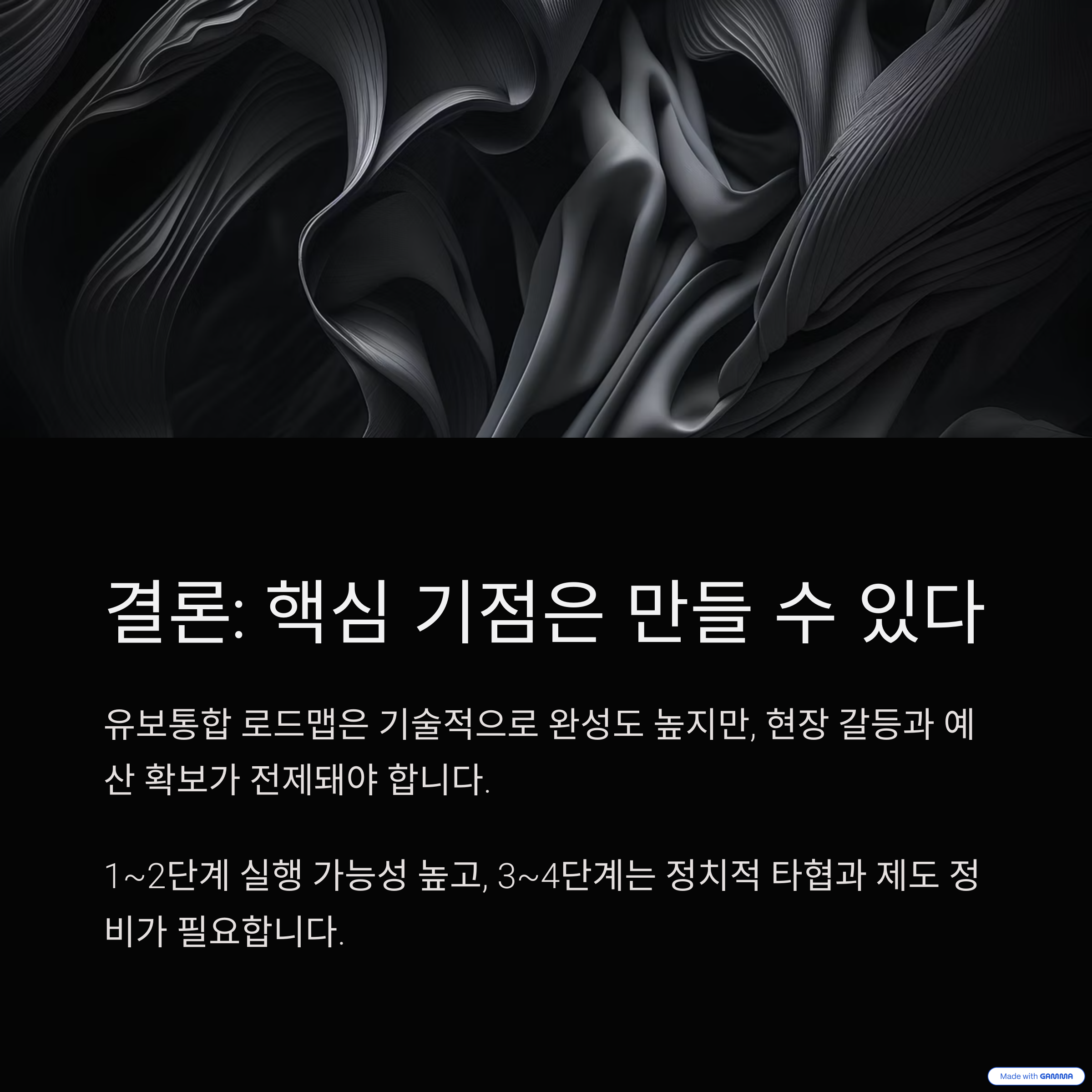 12단계는 실행 가능성이 높지만,4단계로 갈수록 '정치적 타협과 제도 정비'가 현실화를 가릅니다.
