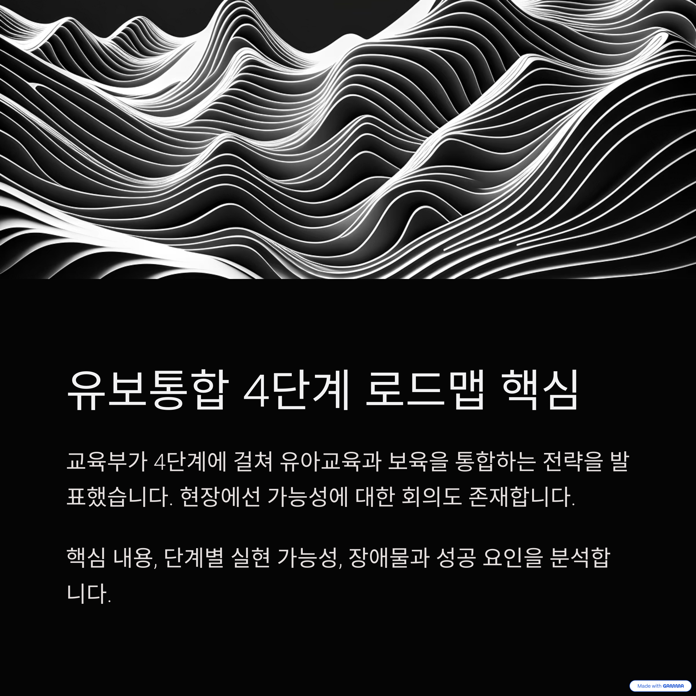 교육부가 발표한 유보통합 로드맵은 4단계에 걸쳐 유아교육과 보육체계를 통합하겠다는 전략적 청사진입니다.