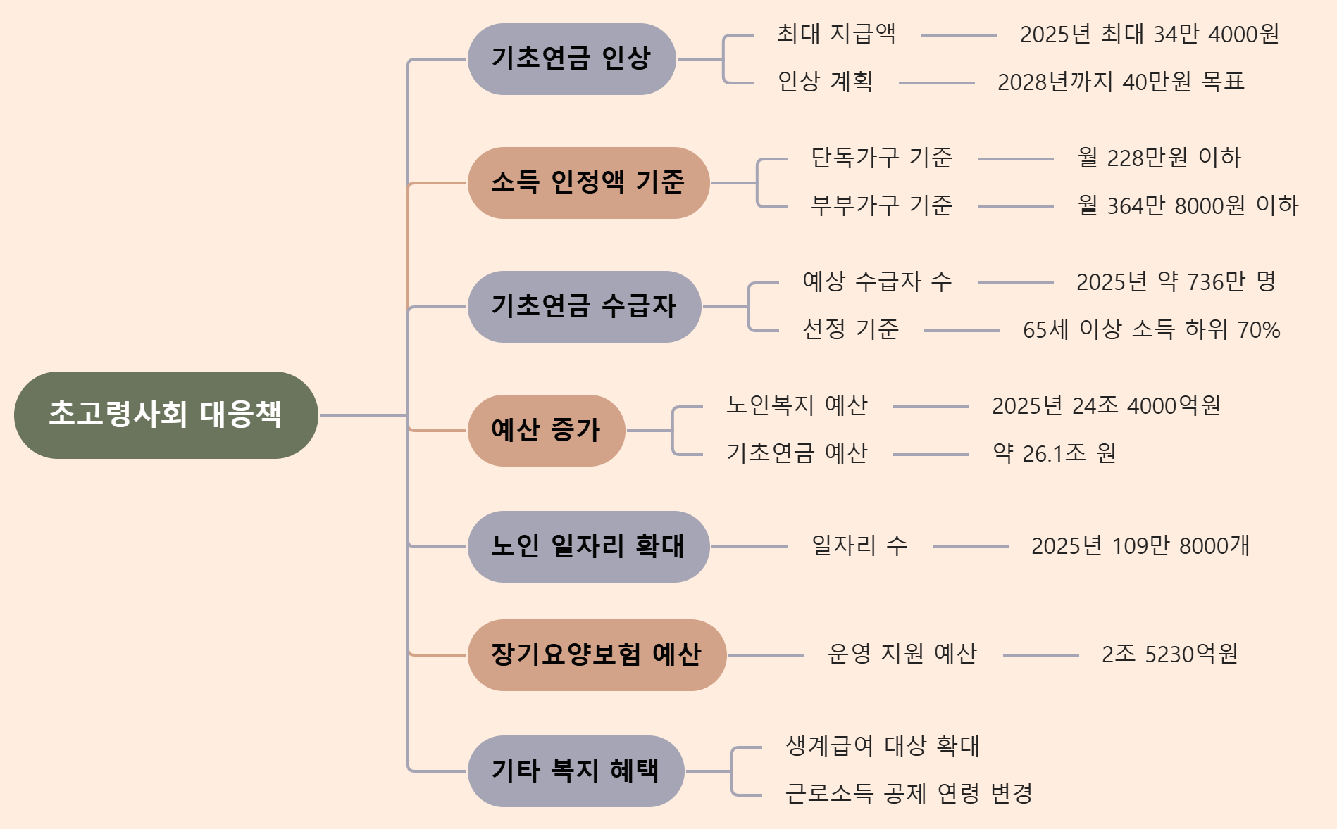 | 기초연금 인상 | 최대 34만 4000원에서 40만원까지 단계적 인상 예정 |