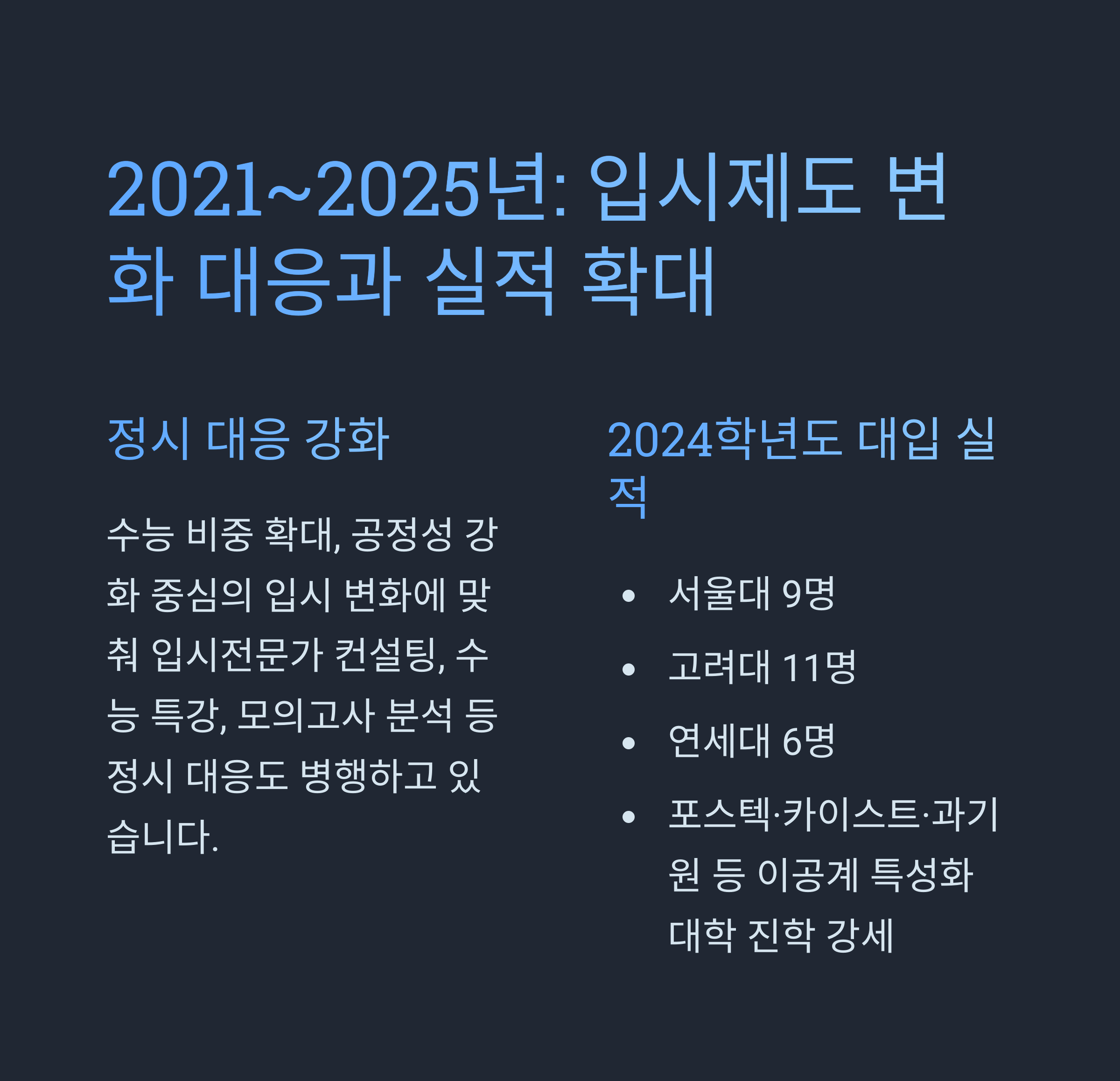 2021~2025년: 입시제도 변화 대응과 실적 확대