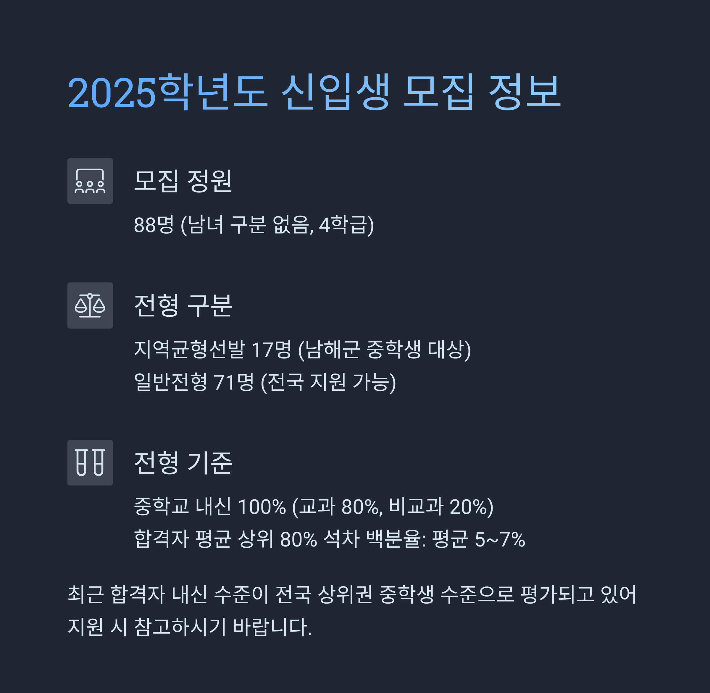 | 지역균형선발 | 17명 (남해군 중학생 대상) |