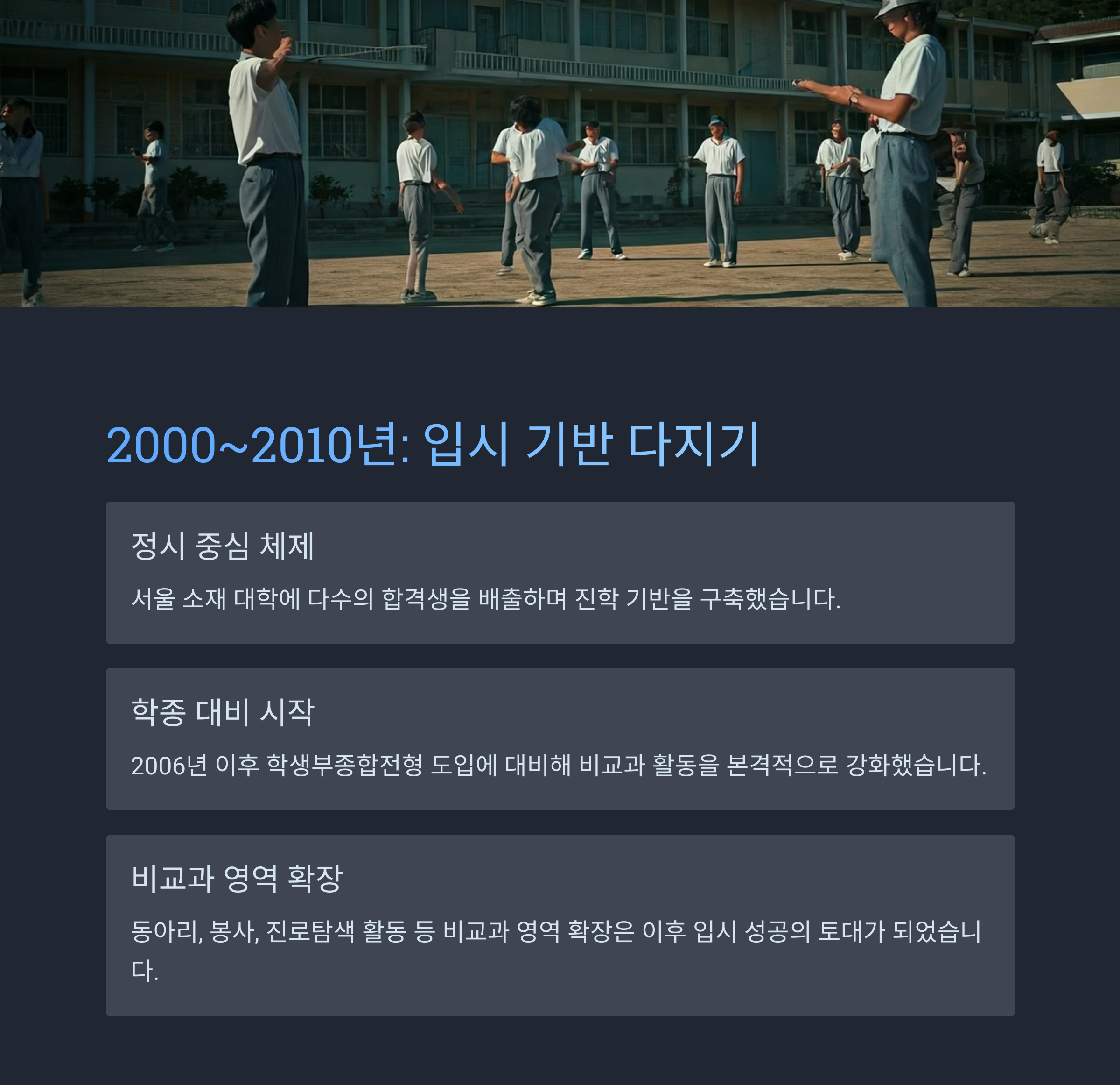 학생부 종합전형 대비가 본격화되며 전국적인 주목을 받기 시작한 시기입니다