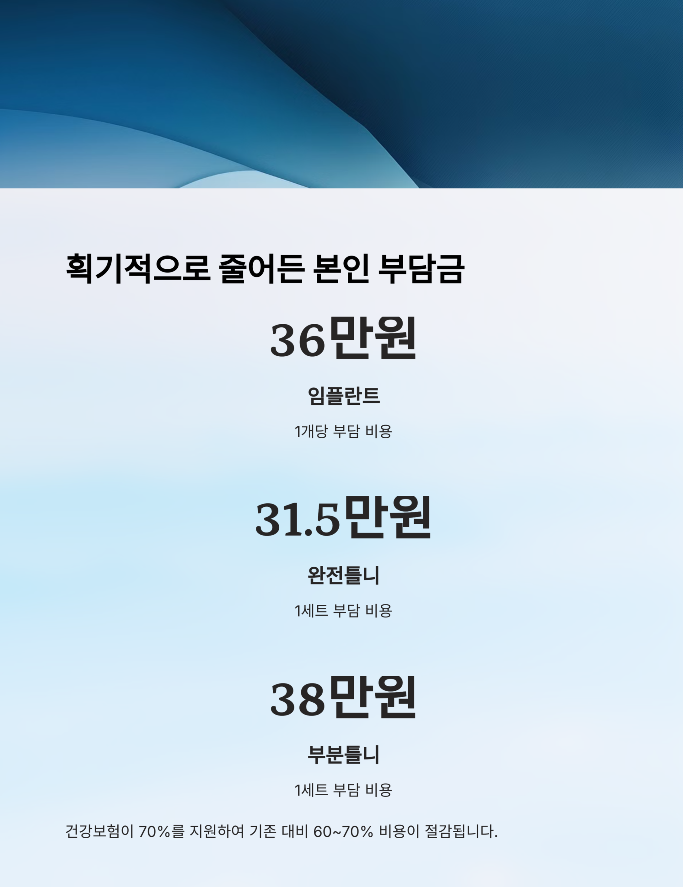 2025년부터 만 65세 이상 노인을 대상으로 틀니와 임플란트 건강보험 지원이 확대됩니다. 이에 따라 본인 부담금이 기존 대비 대폭 줄어들 예정인데요. 기존에는 고가의 치료비로 인해 많은 노인분들이 구강 건강 유지에 어려움을 겪었습니다. 하지만 이번 건강보험 확대 정책을 통해 경제적 부담을 덜고, 보다 건강한 노후 생활을 유지할 수 있을 것으로 기대됩니다. 이번 글에서는 틀니와 임플란트의 지원 내용과 본인 부담금 변화를 상세히 정리해드리겠습니다. 어떤 혜택이 있는지, 그리고 어떻게 신청할 수 있는지 함께 살펴보시죠!