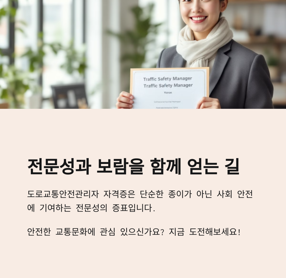 - 전문성 인정: 교통안전 분야에서 전문가로 인정받을 수 있습니다.