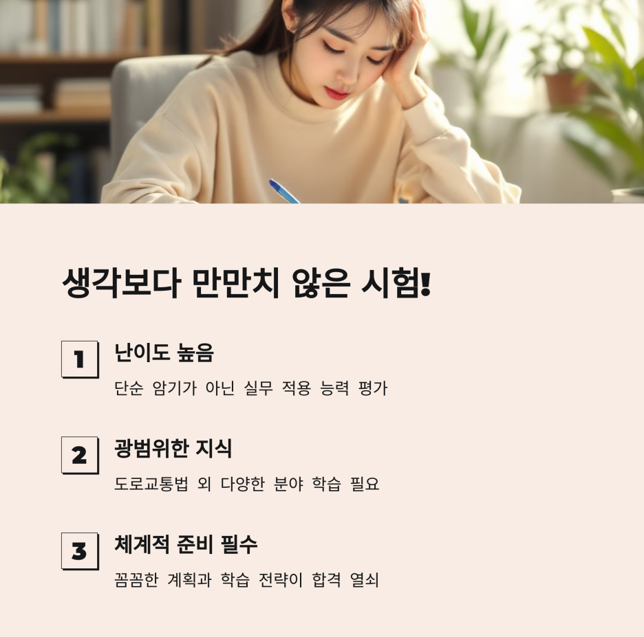 솔직히 말씀드리자면, 시험이 예상보다 훨씬 어려웠습니다. 단순히 도로교통법만 알면 된다고 생각했는데, 그게 아니었어요.