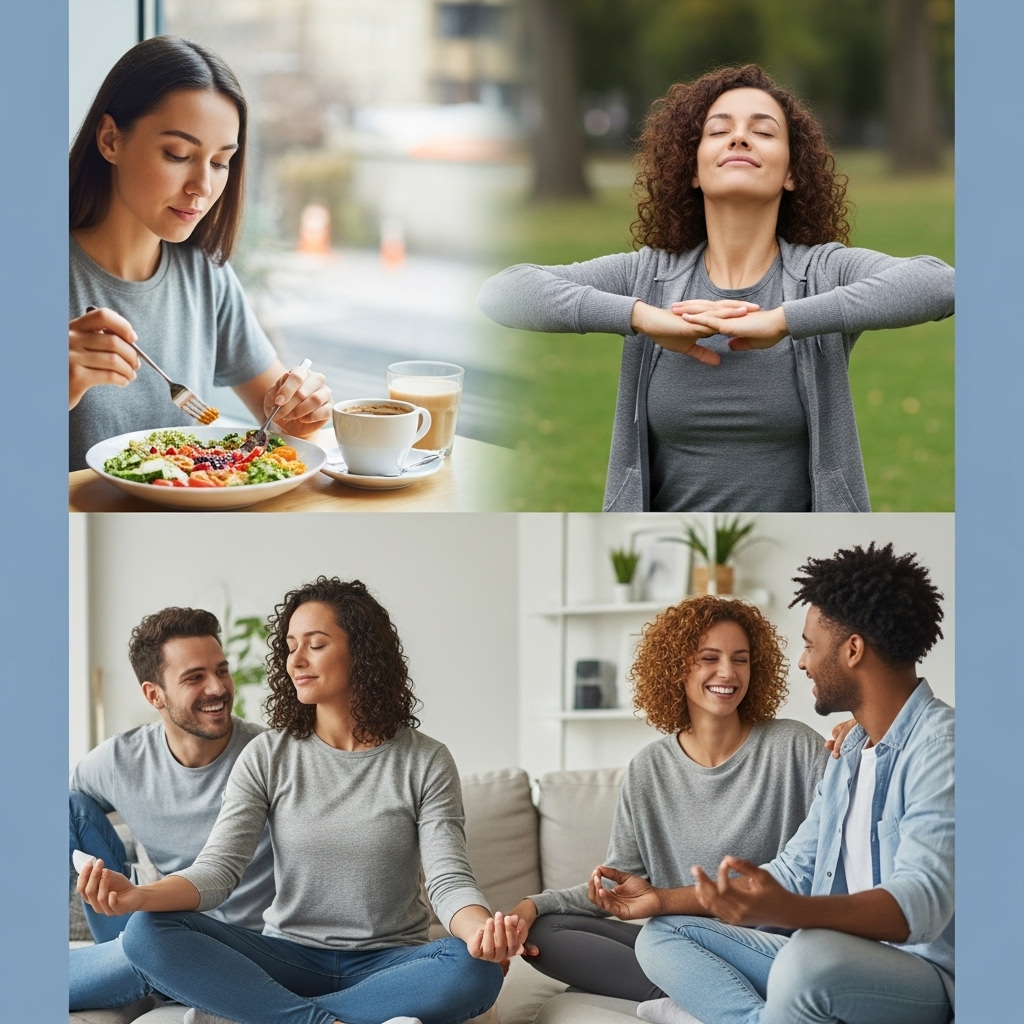 - 마음챙김 식사: 음식을 천천히 음미하고 몸의 신호에 집중하며, 음식과의 건강한 관계를 형성합니다.
