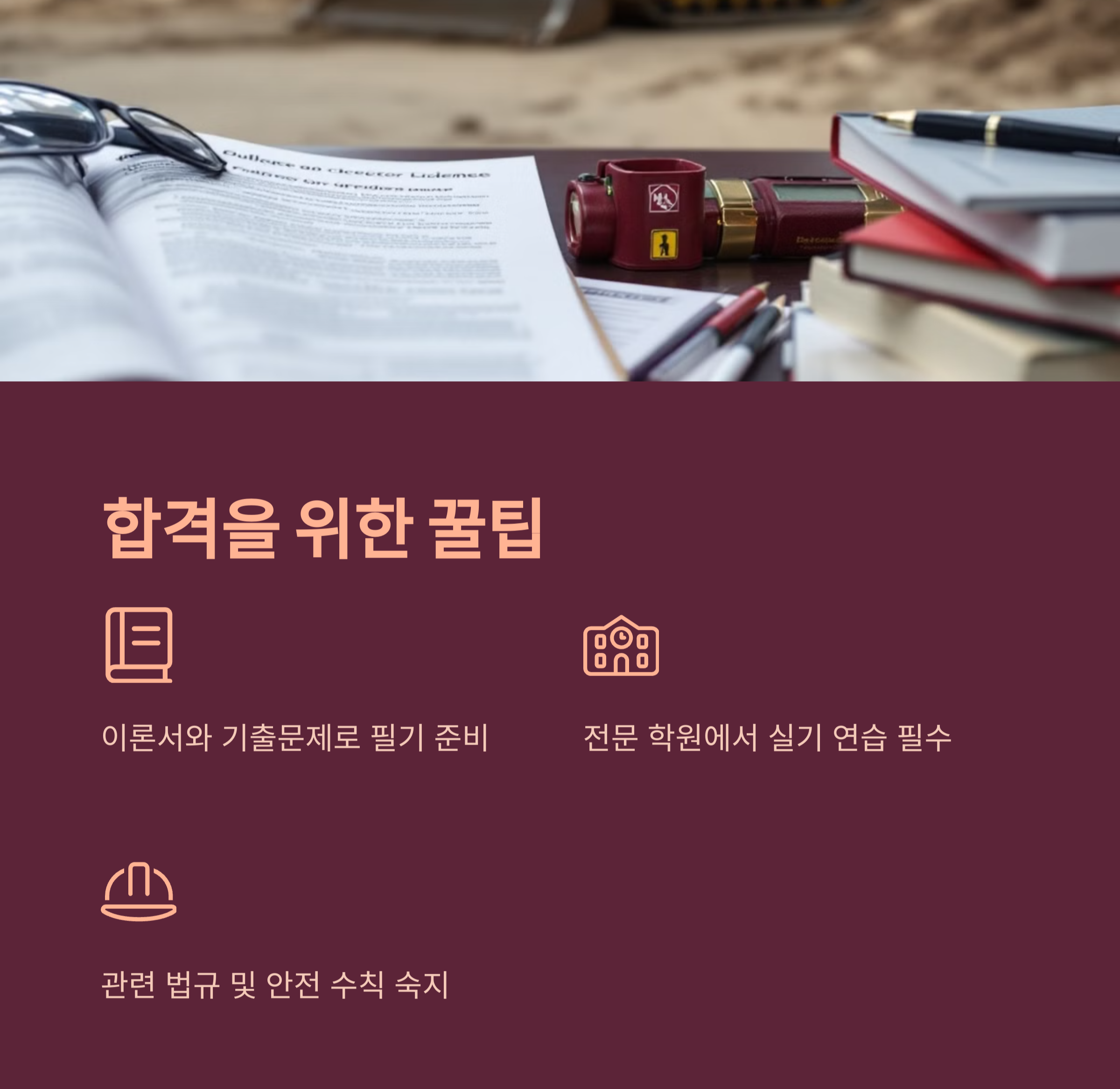 - 실기 연습: 실제 불도저를 조작하는 연습을 충분히 해둬야 합니다.