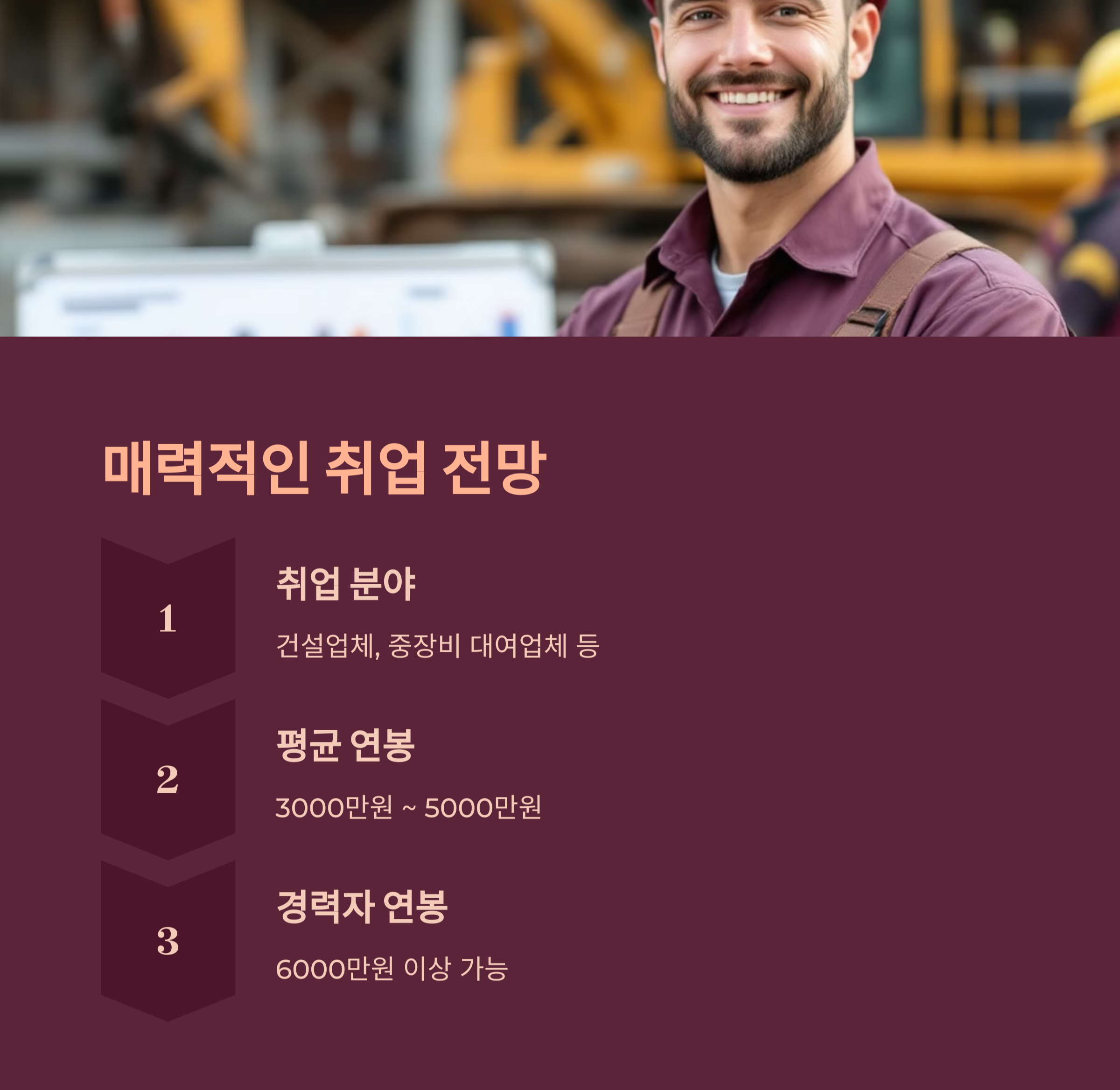 건설업체, 도로공사, 채굴업체, 지자체 공사 현장 등에서 일할 수 있습니다.