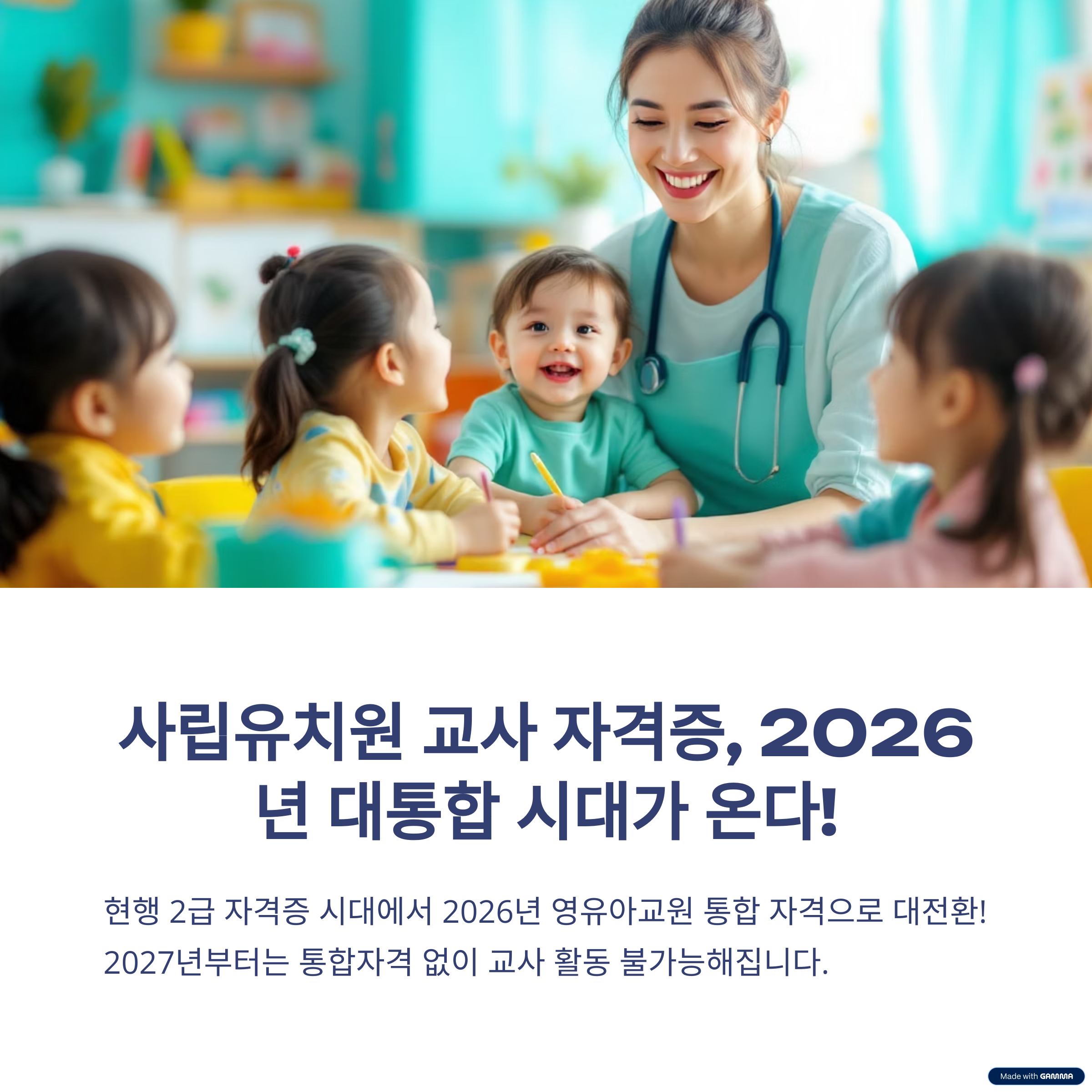2026년부터 유치원과 어린이집의 자격이 ‘영유아교원’으로 통합됩니다.