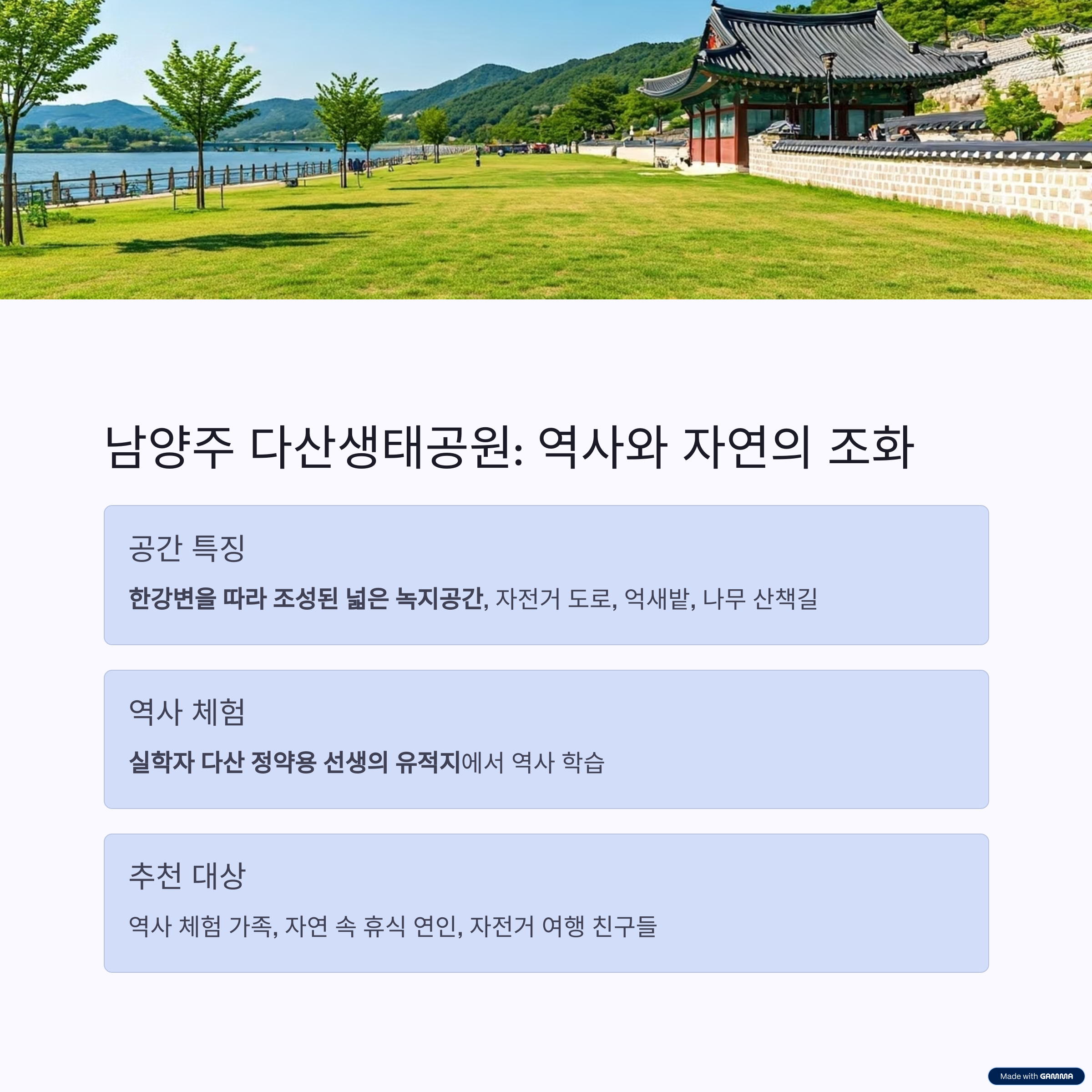 가볍게 걸으며 역사와 자연을 동시에 체험할 수 있습니다.