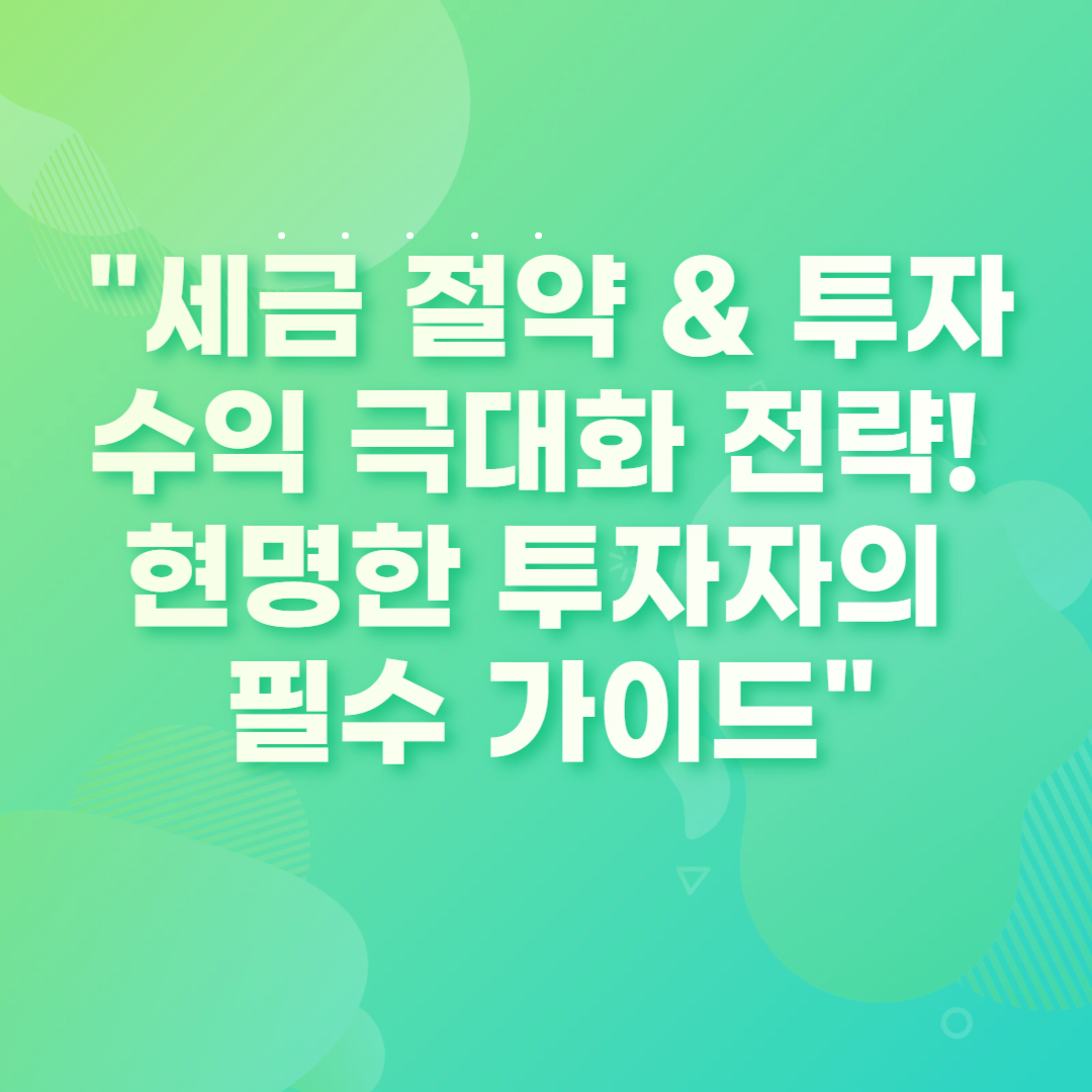 "세금 절약 & 투자 수익 극대화 전략! 현명한 투자자의 필수 가이드"