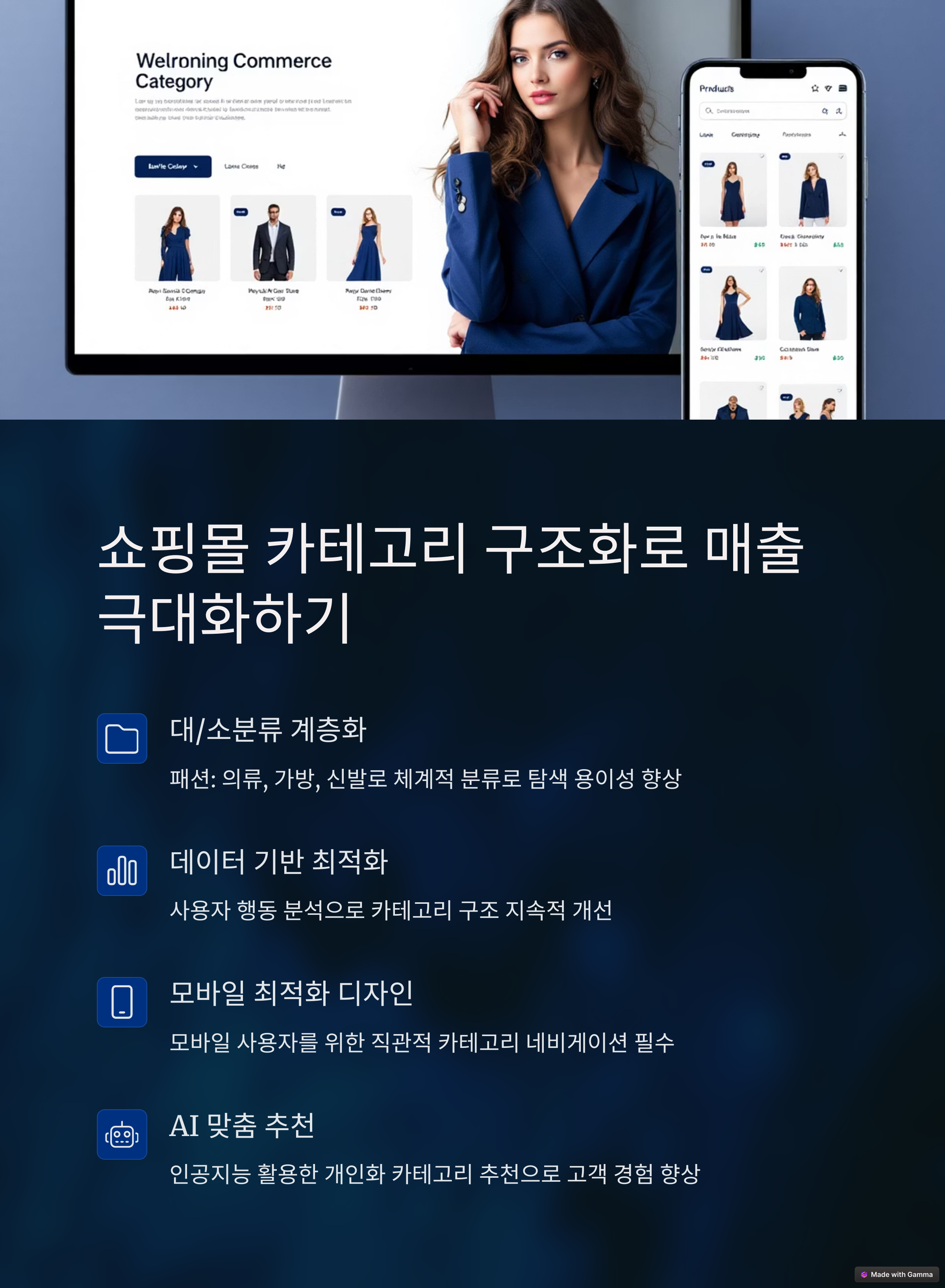 먼저 쇼핑몰의 카테고리 구조는 단순한 분류가 아닌 사용자의 구매 여정을 향상시키는 중요한 역할을 합니다.