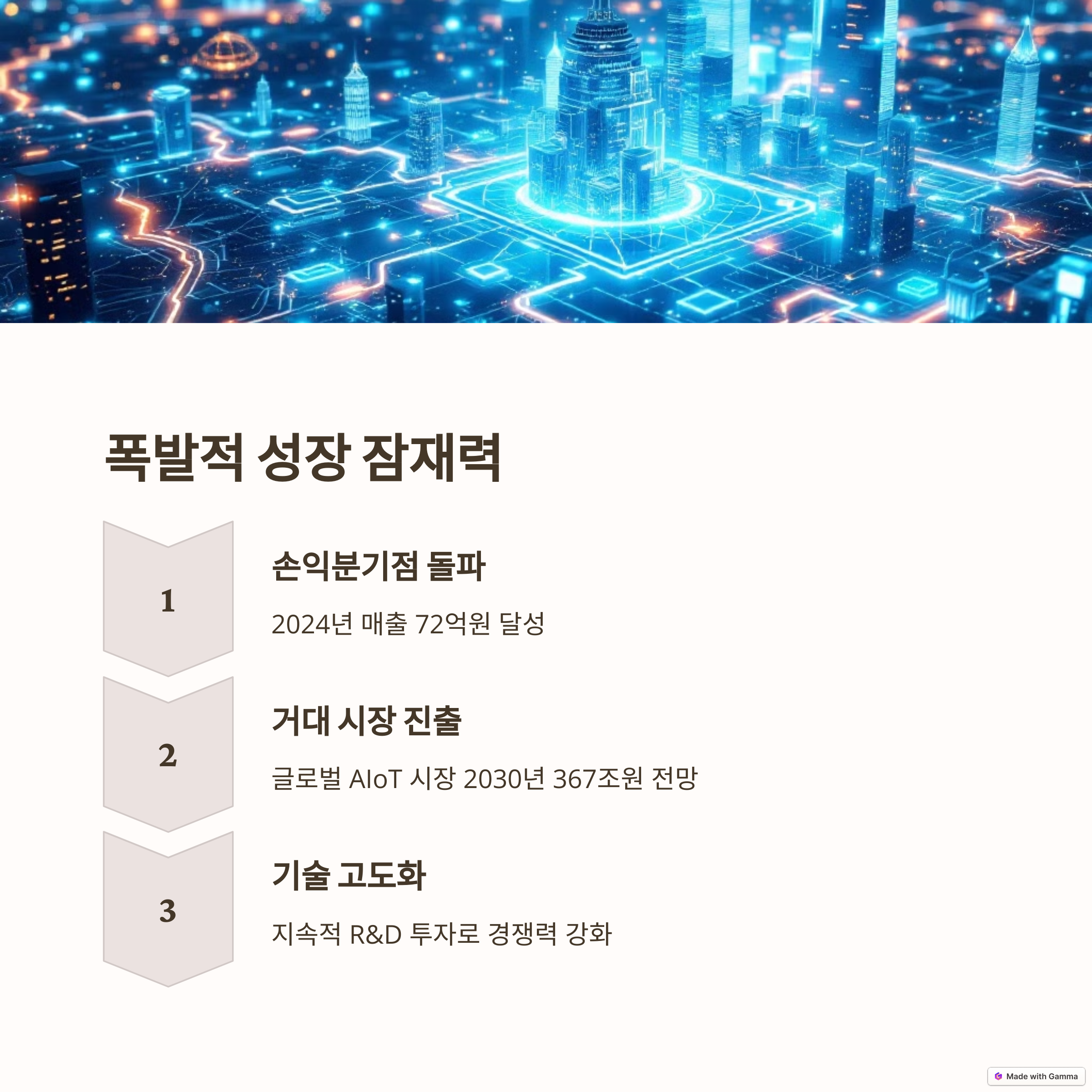 - 경쟁력 있는 기술력: 자체 개발한 기술로 시장에서 차별화된 서비스를 제공하고 있습니다.