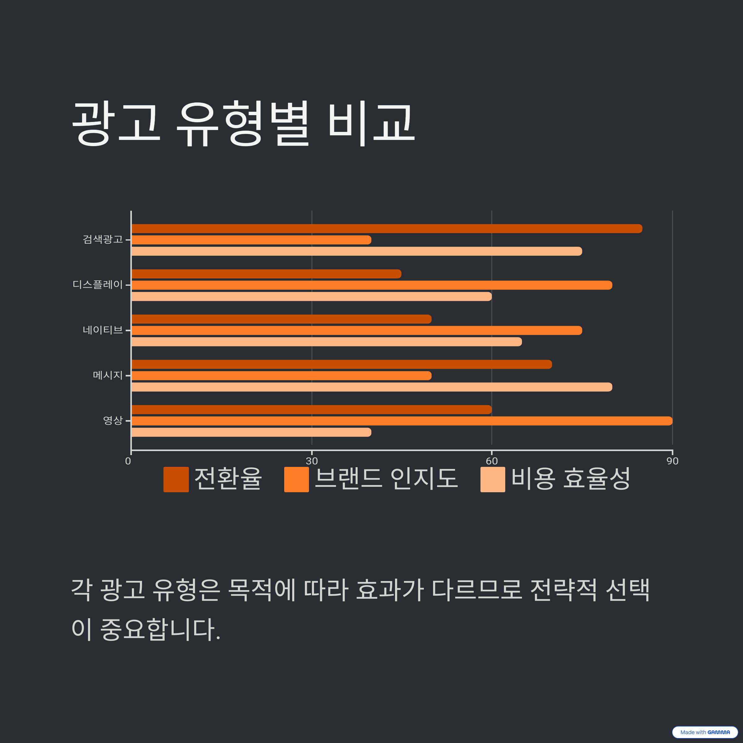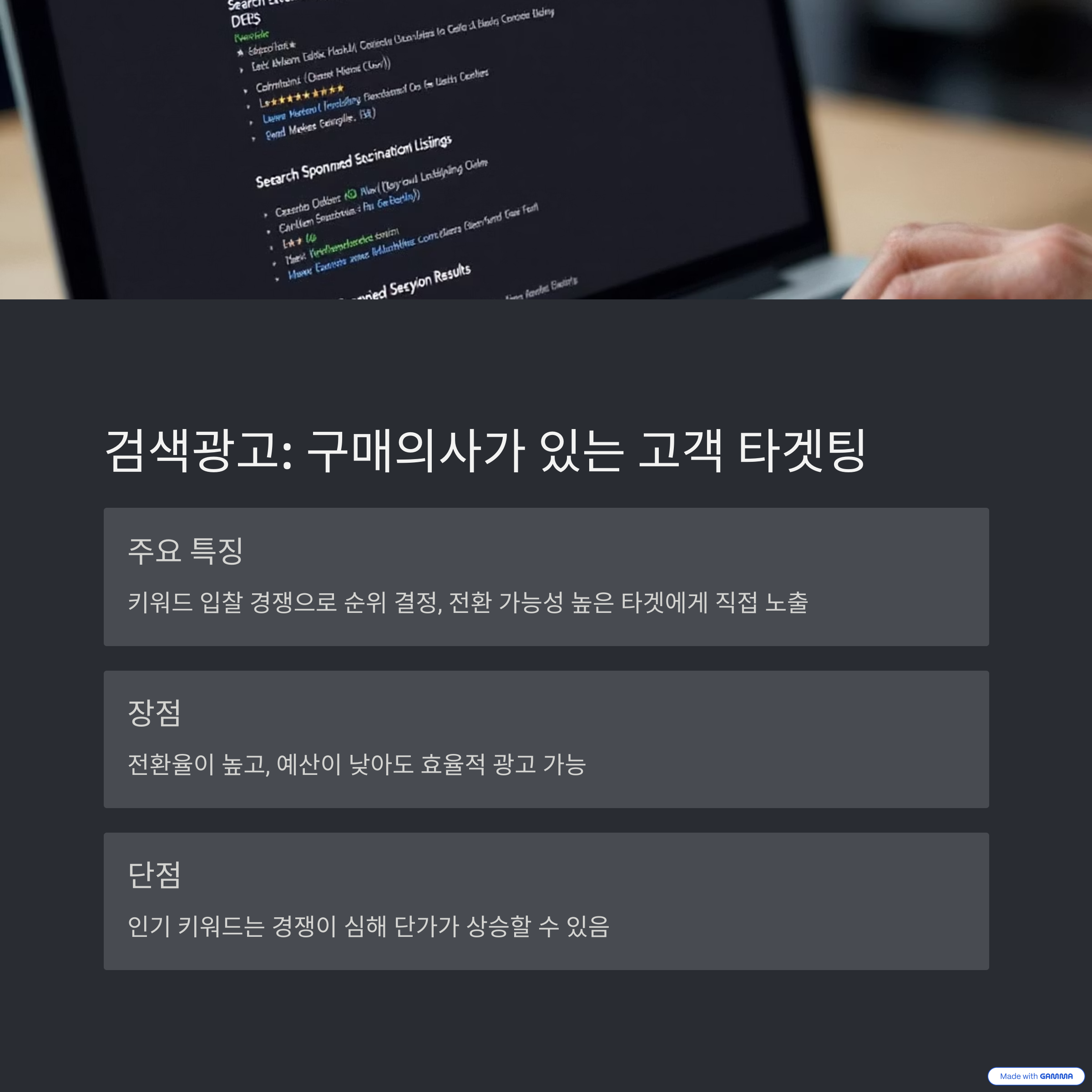 각각의 광고 유형은 노출 방식, 타겟 설정, 예산 운용 등에 따라 다르게 활용됩니다.