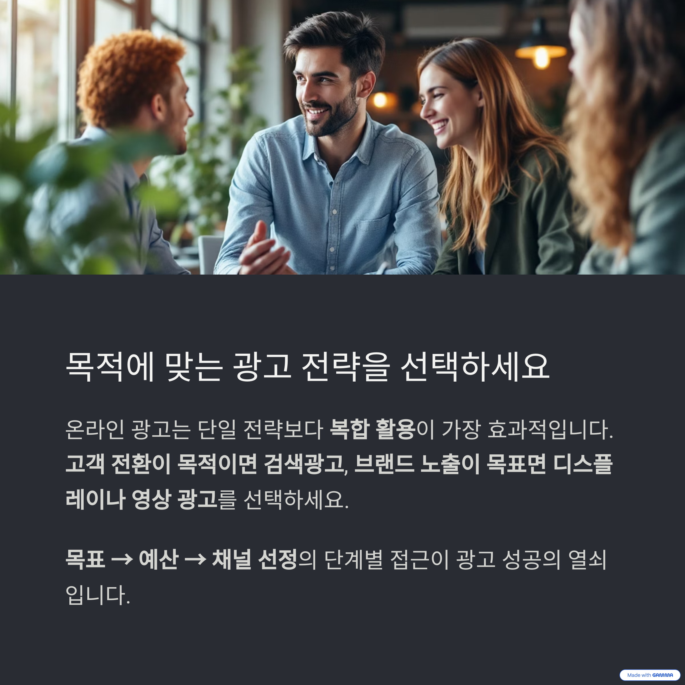 온라인 광고는 단일 전략보다 복합 활용이 가장 효과적입니다.