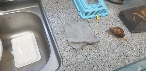 우리집 달팽이 목욕 후에 좀 놀아라고 두었더니 혼자서 힘껏 싱크대 위로 올라와 있네요. 한 5분 정도 걸린 듯 합니다.
