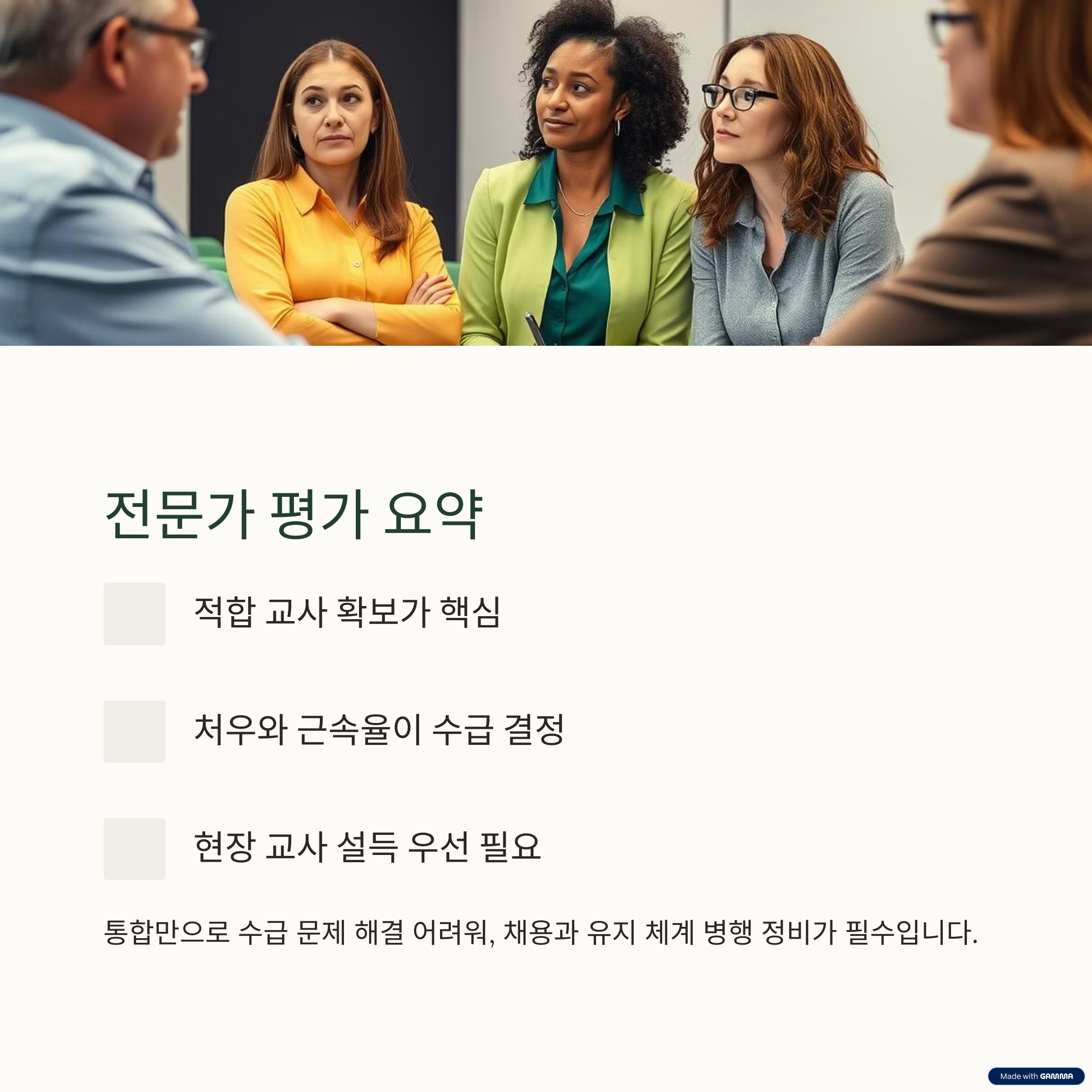 - "양적 문제보다 ‘적합 교사’ 확보가 핵심이다"