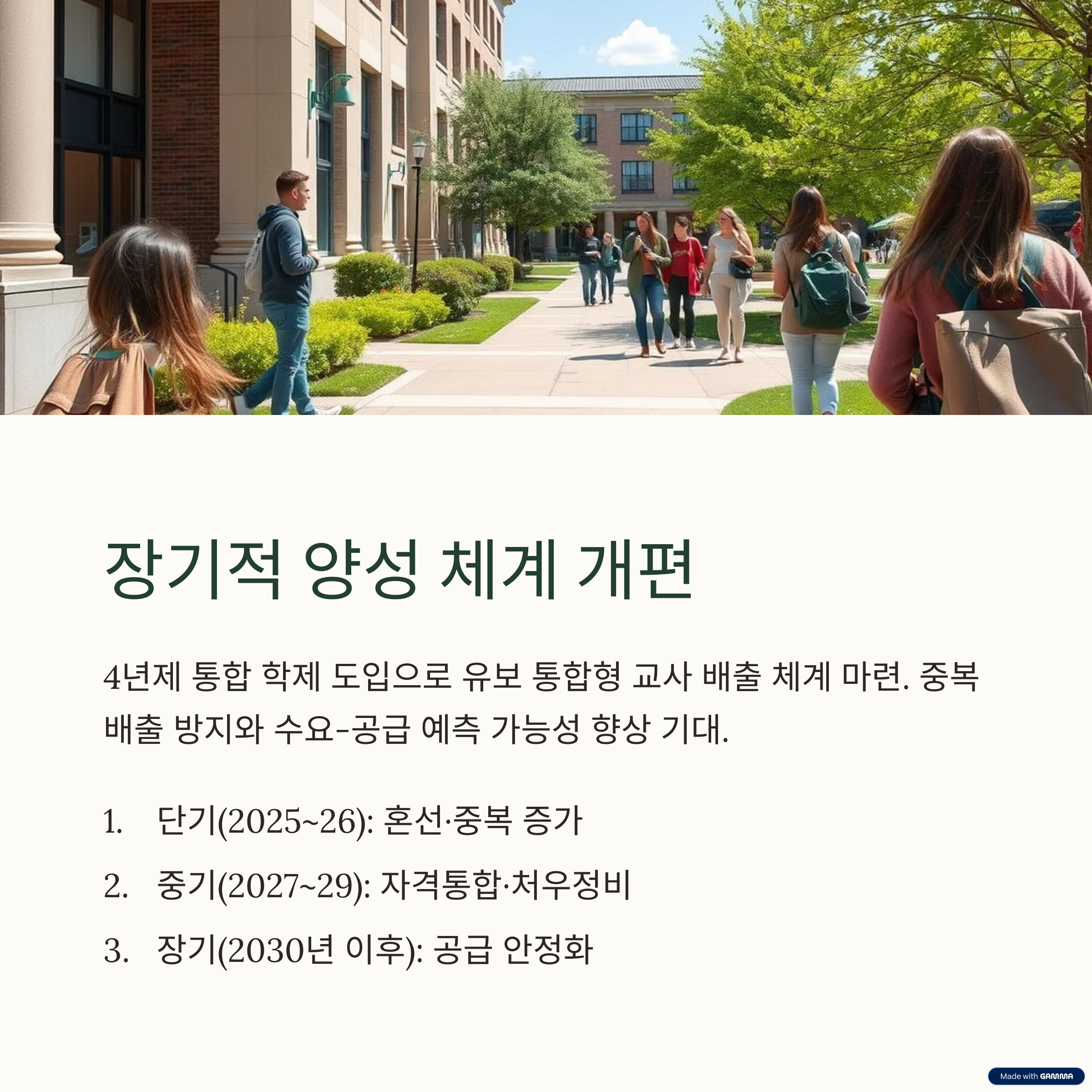 정부는 **교사 양성 과정 자체를 개편(4년제 통합 학제