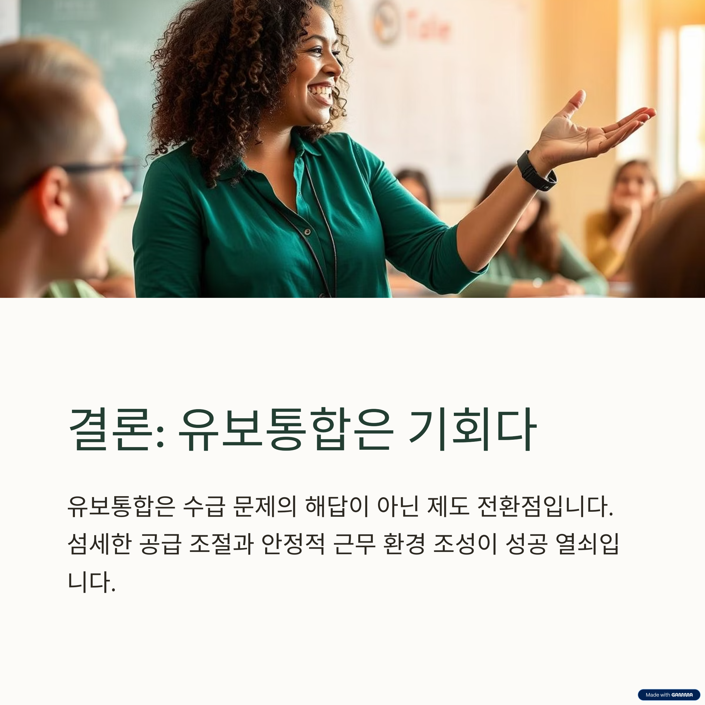 - "지금의 통합은 구조적 정비 이전에 현장 교사 설득이 먼저다"