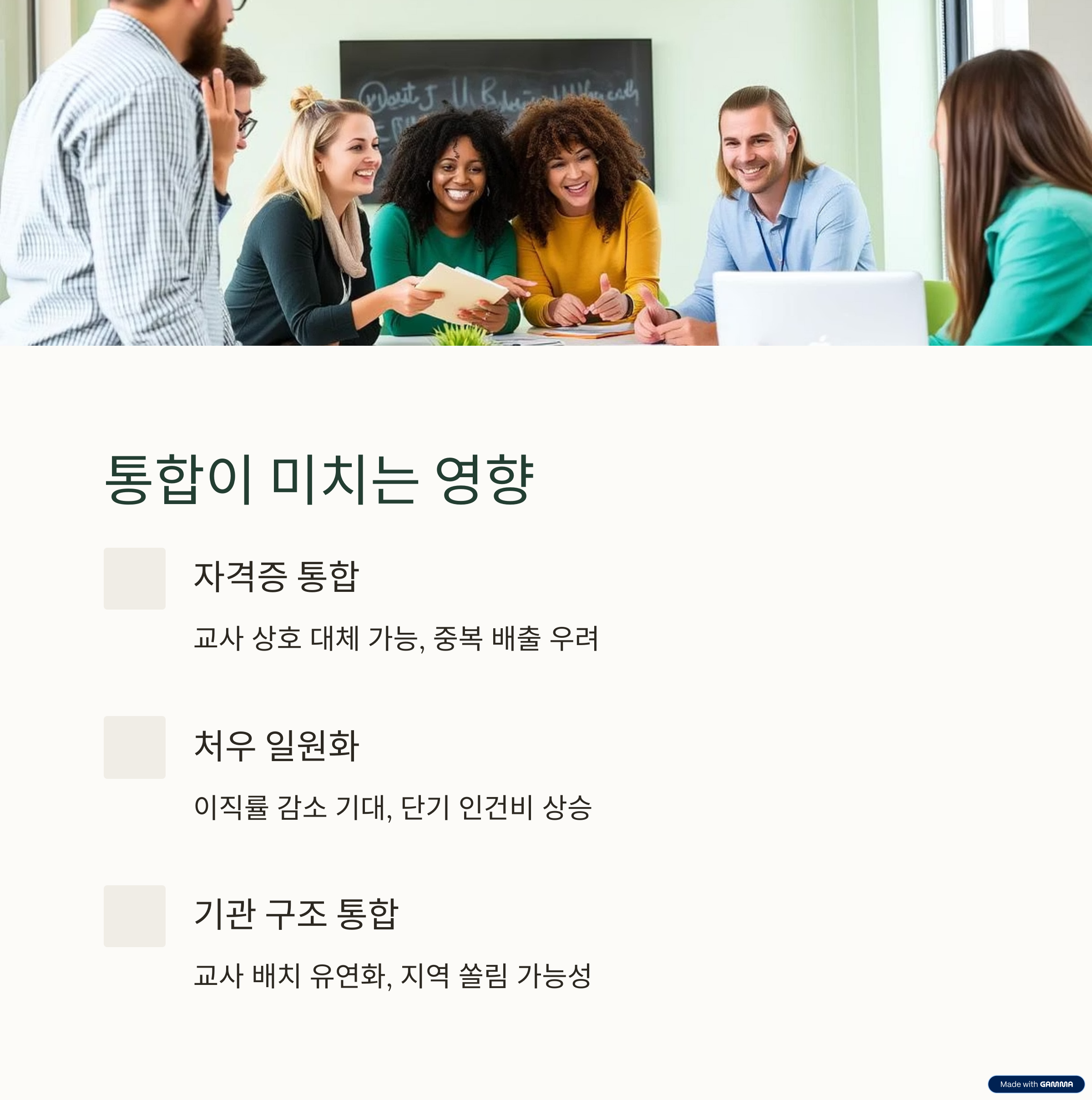 | 자격증 통합 | 양쪽 교사 상호 대체 가능 | 중복 배출 증가 우려 |