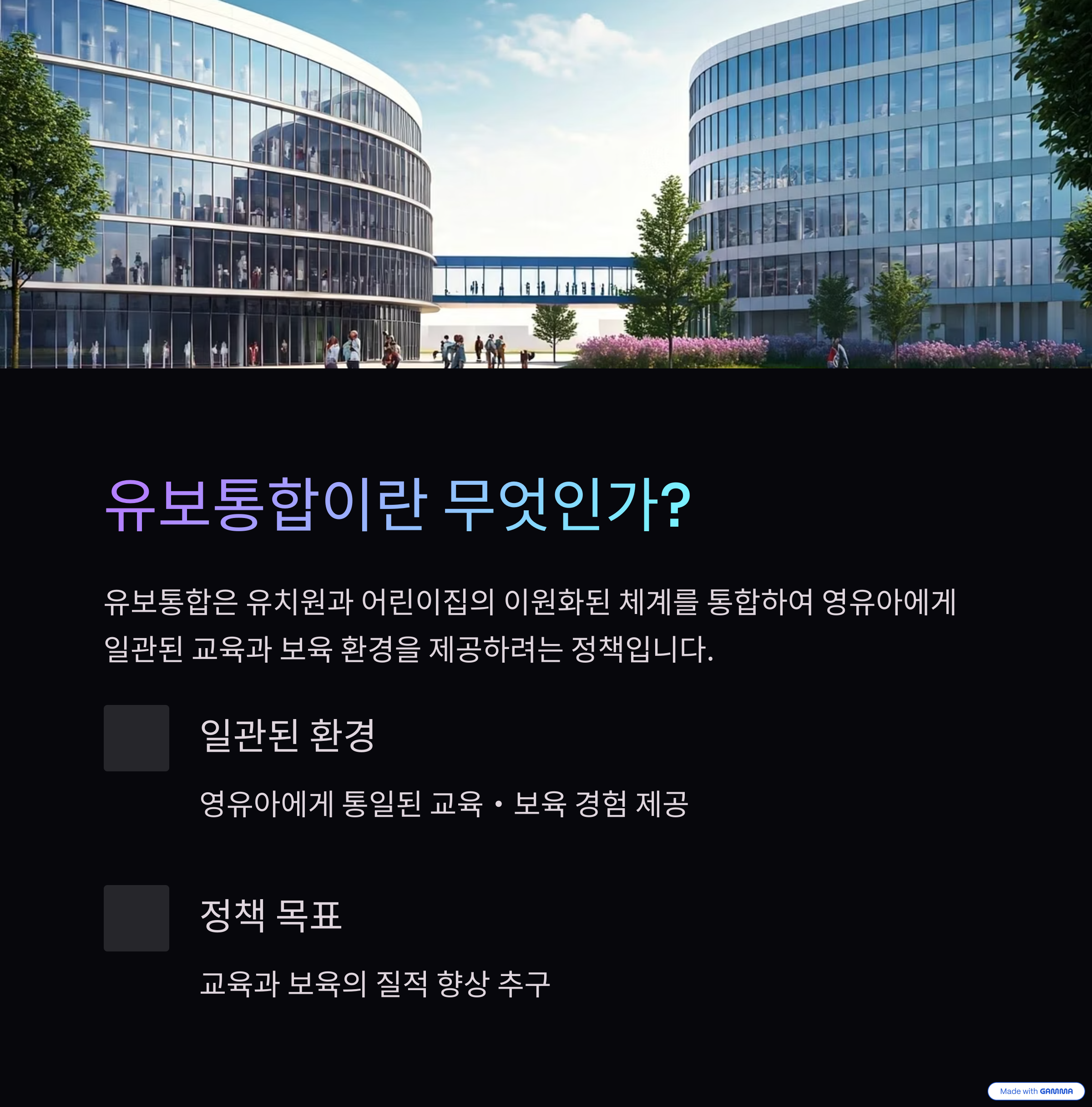 영유아에게 일관된 교육과 보육 환경을 제공하려는 정책입니다.