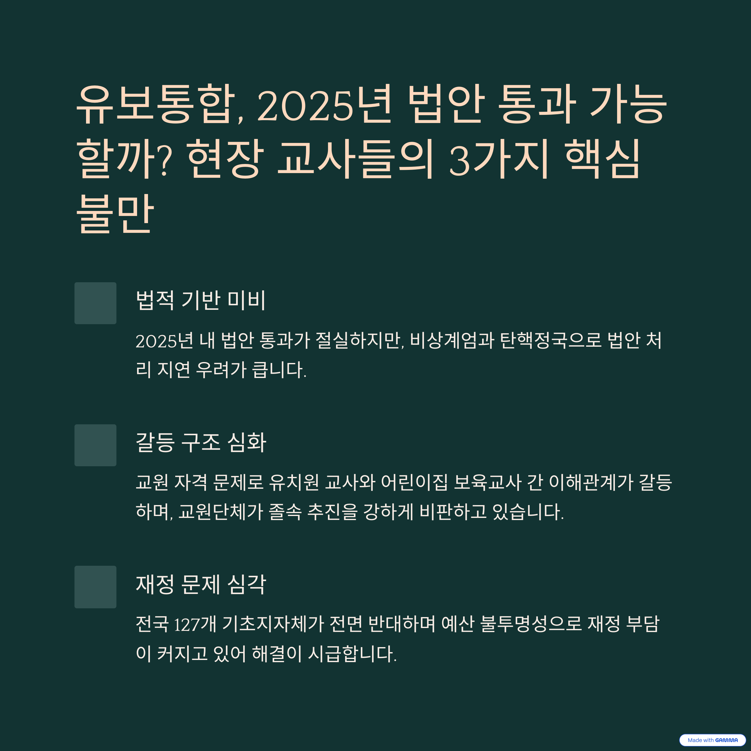 유보통합 추진은 2026년을 목표로 진행 중이지만, 교사 간 갈등 구조가 심화되고 있습니다.