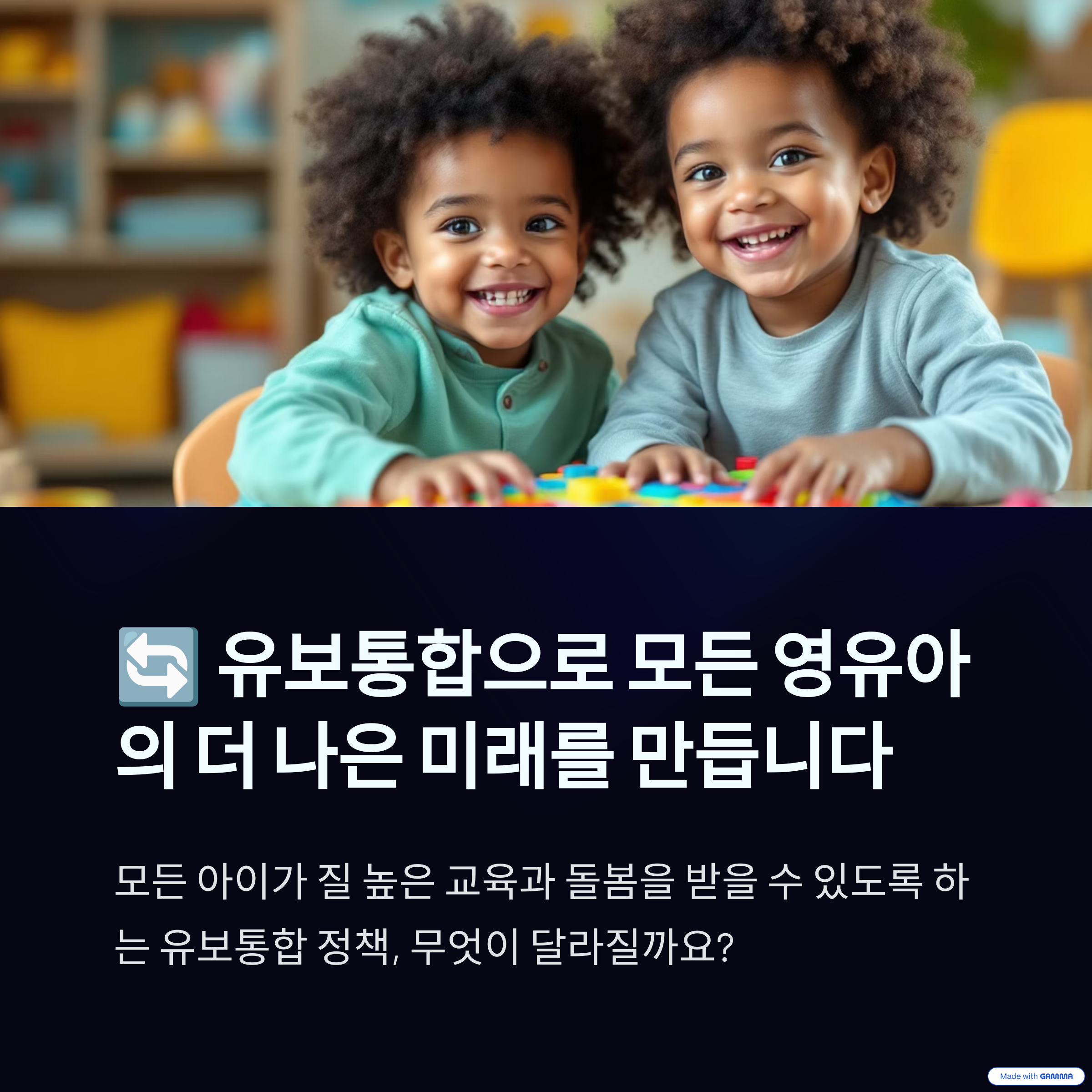 유보통합이란 유아 교육과 보육을 통합하여 지역 격차를 줄이고 전반적인 사회복지를 강화하는 정책입니다.