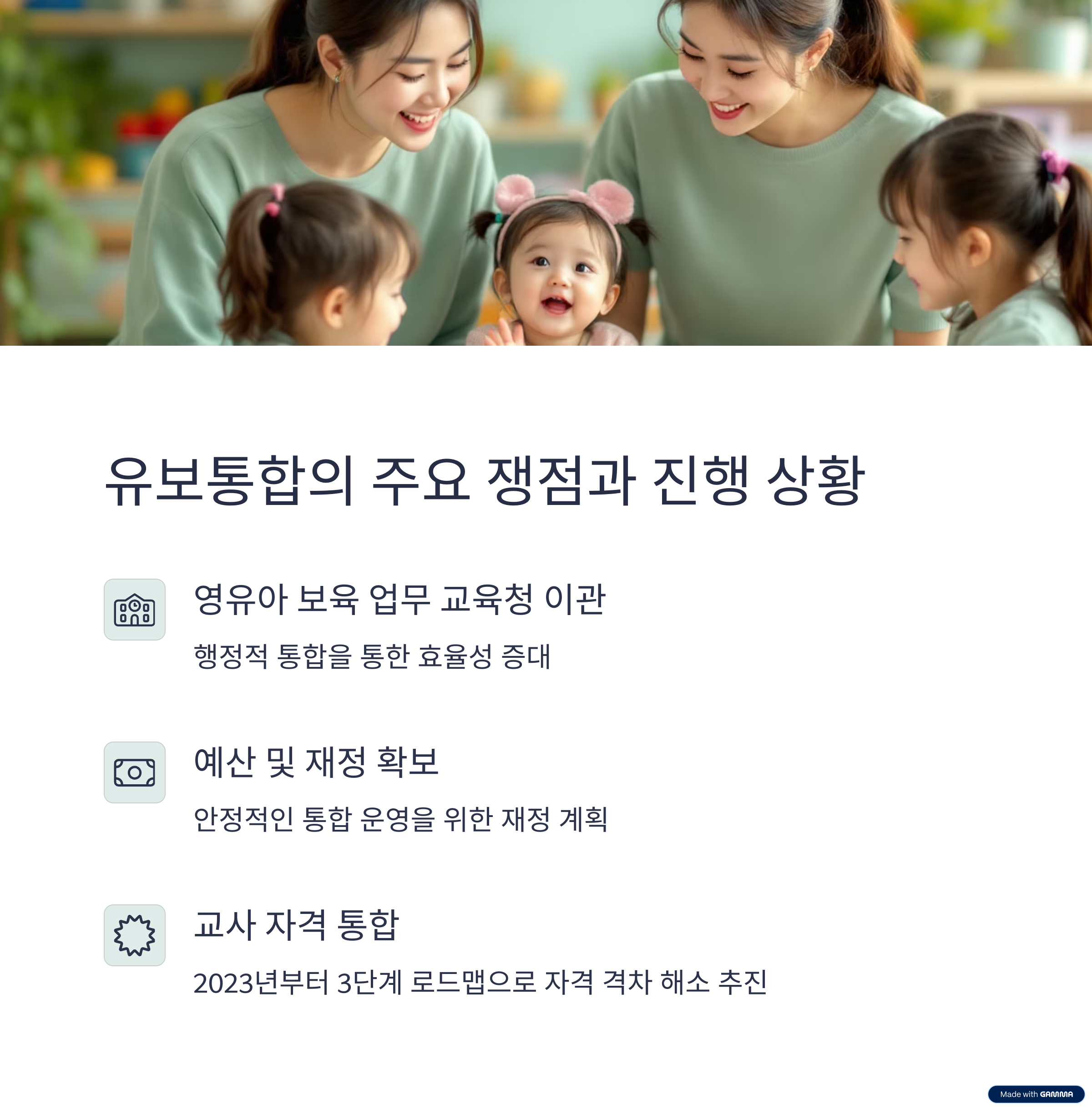 특히, 기존 유치원 교사와 보육교사 간의 자격 요건 통합은 핵심 쟁점으로, 이를 해결하기 위한 3단계 로드맵이 제시되었습니다.