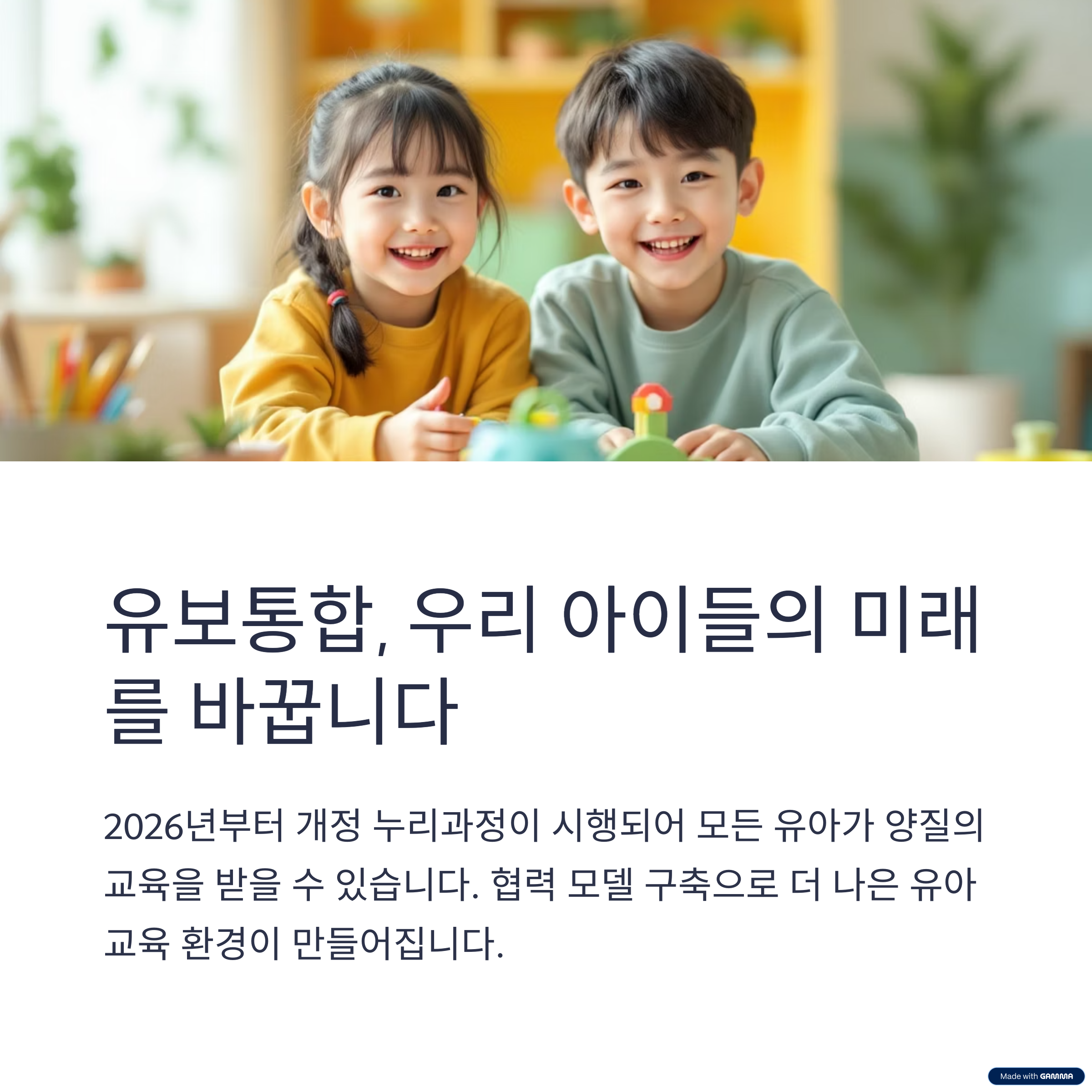 미래 세대를 위한 투자로서 유보통합은 매우 중요한 전환점으로 자리매김할 것입니다.