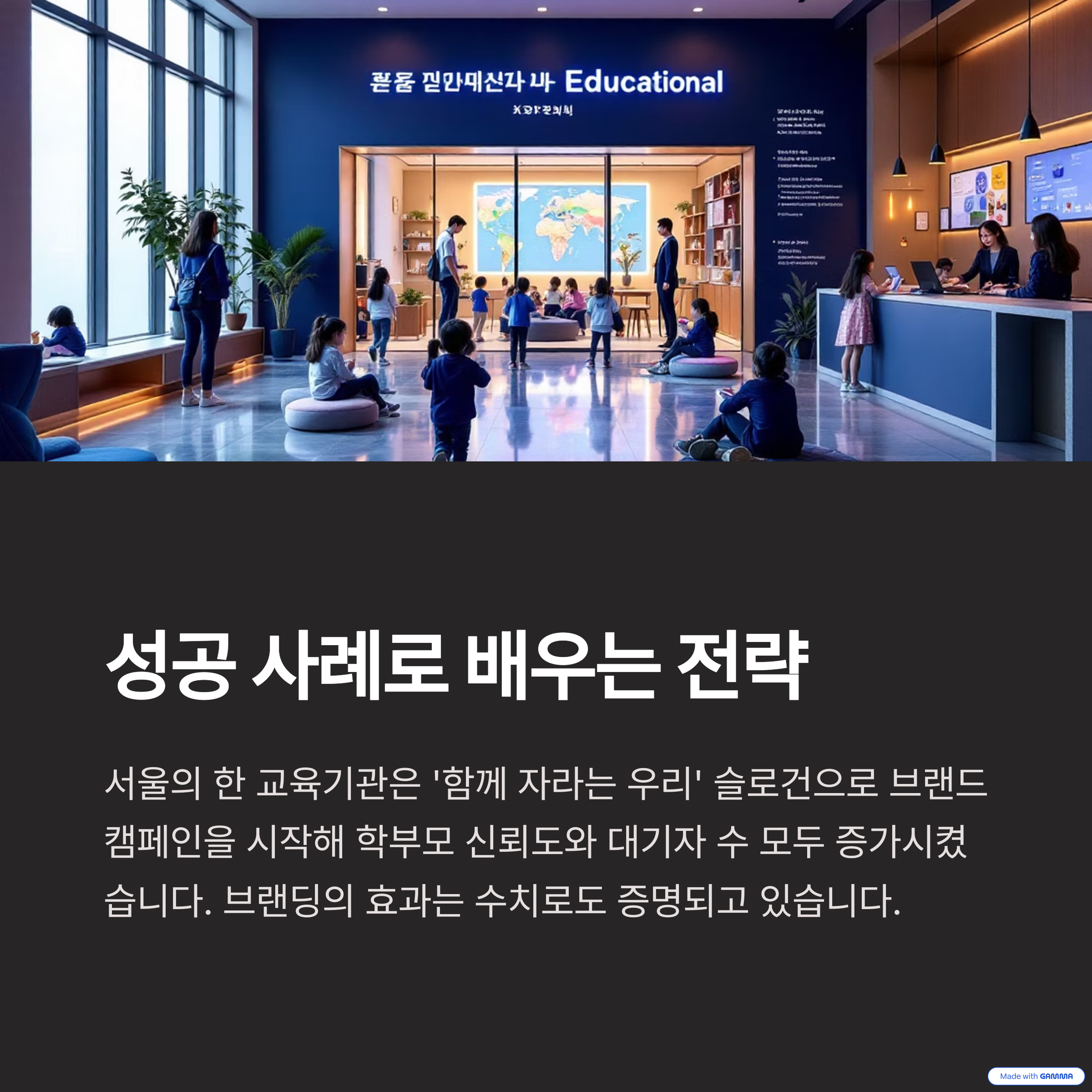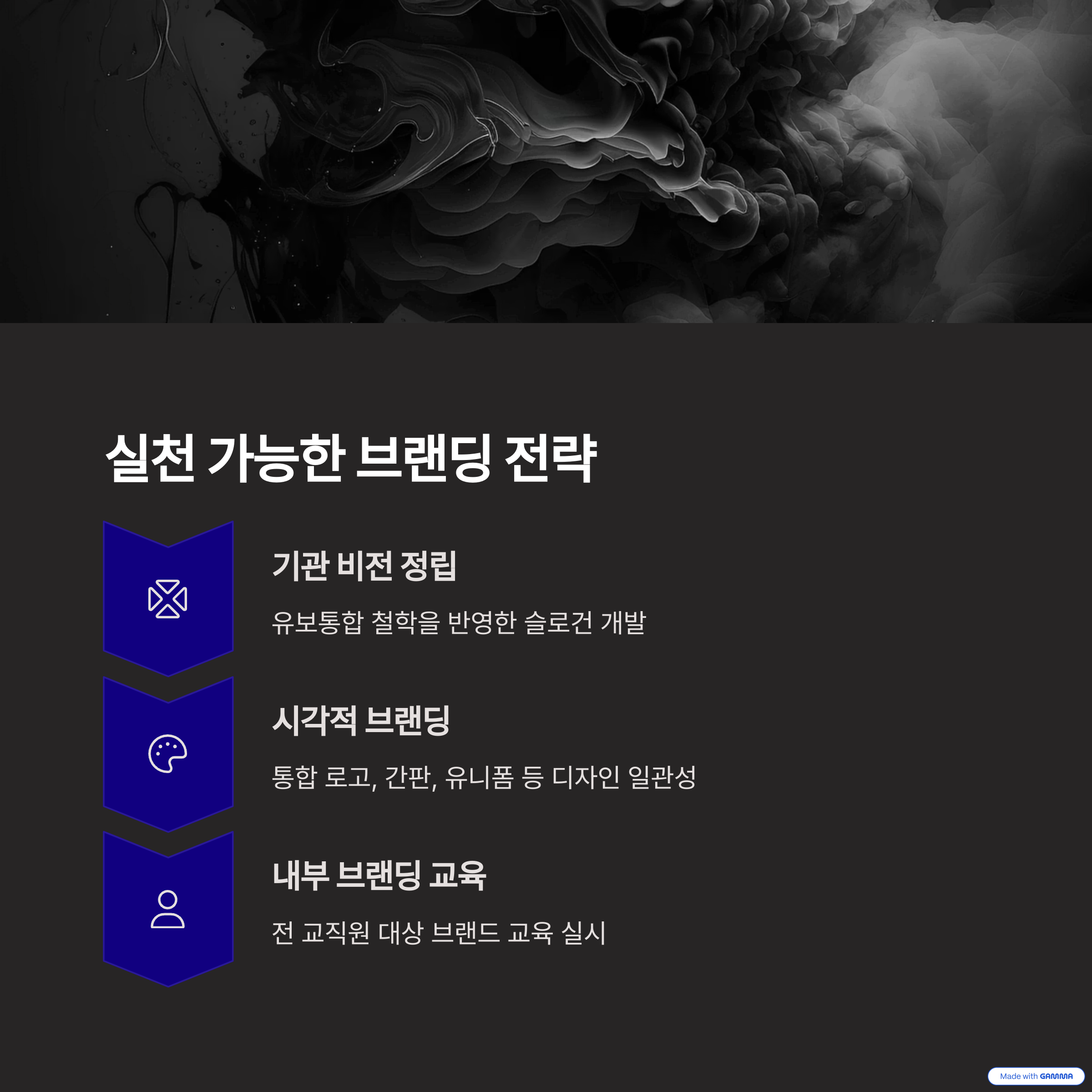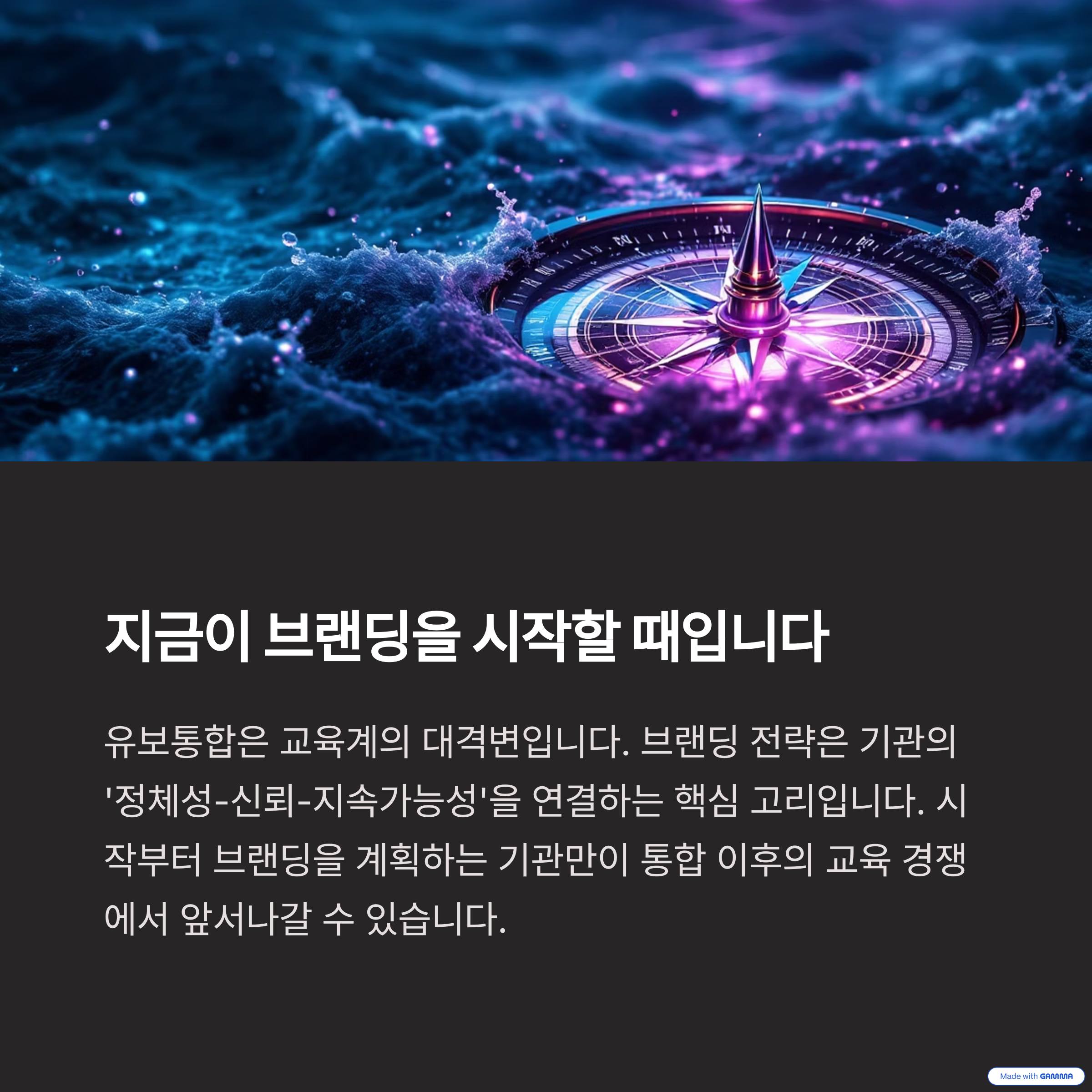 브랜딩은 통합된 교육기관의 지속 가능성을 결정짓는 핵심 요소입니다.