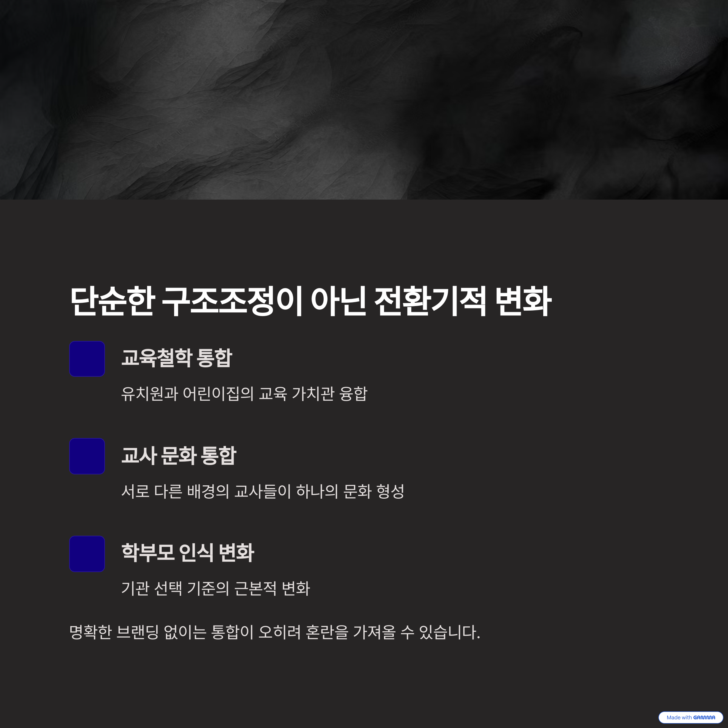 | 학부모 불신 | 통합 후 운영 방침 모호 → 신뢰 하락 |