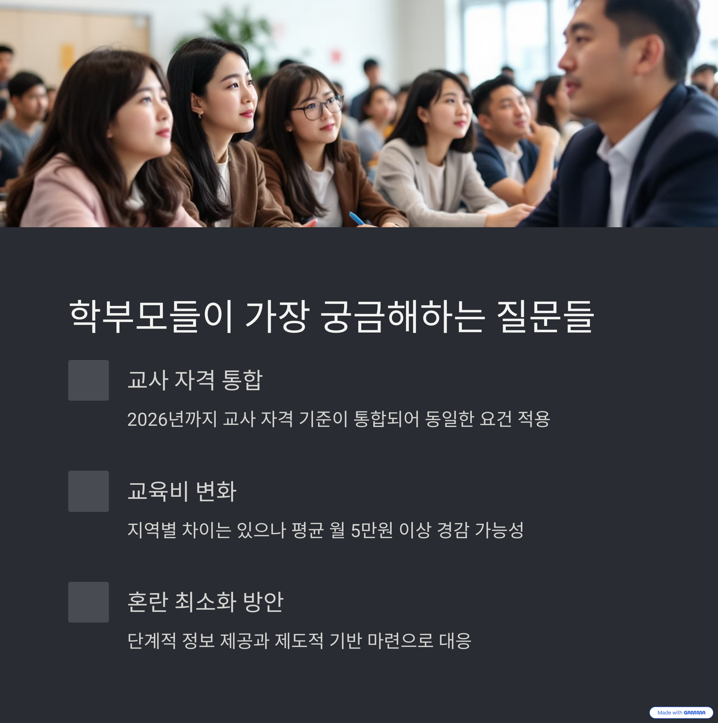 그렇기 때문에 단계적 실행과 학부모 대상 정보 전달 전략이 반드시 병행되어야 합니다.