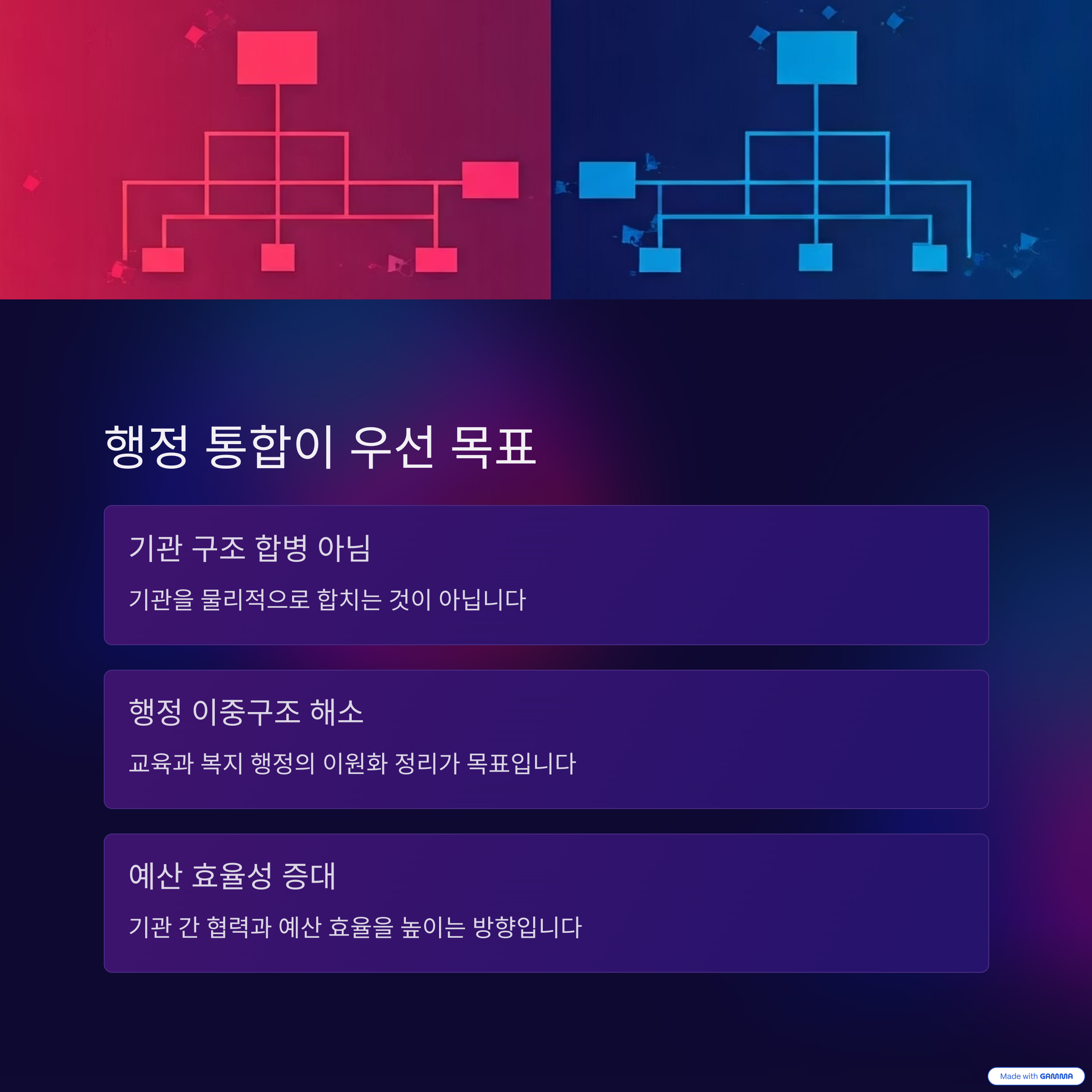 **기관 간 협력과 예산 효율을 높이기 위한 ‘행정 통합 중심 모델’**로 보고 있습니다.