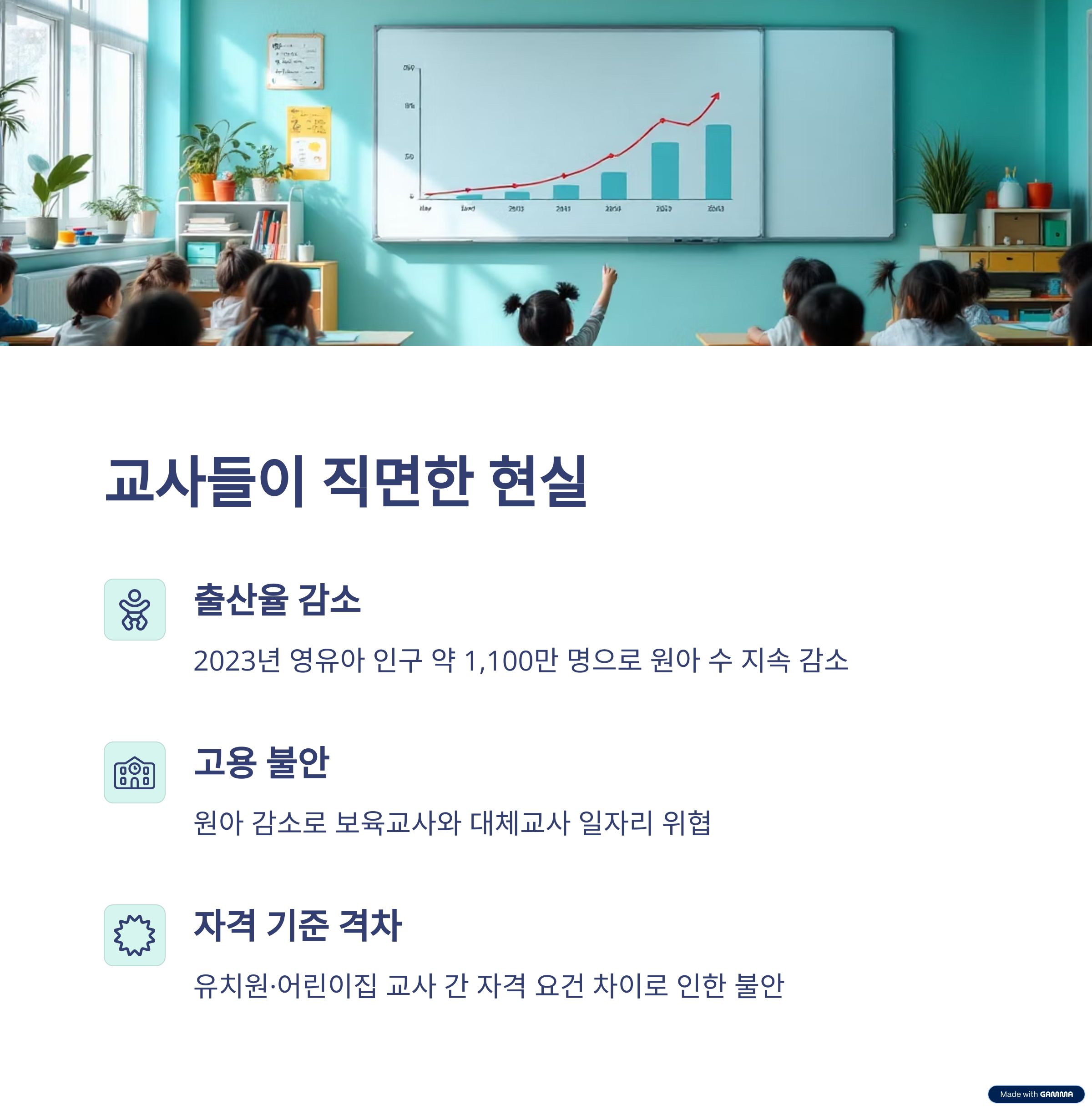 이 정책은 아이들 발달에 큰 도움을 줄 수 있지만, 동시에 교사들의 고용 불안정이라는 문제를 야기하고 있습니다.