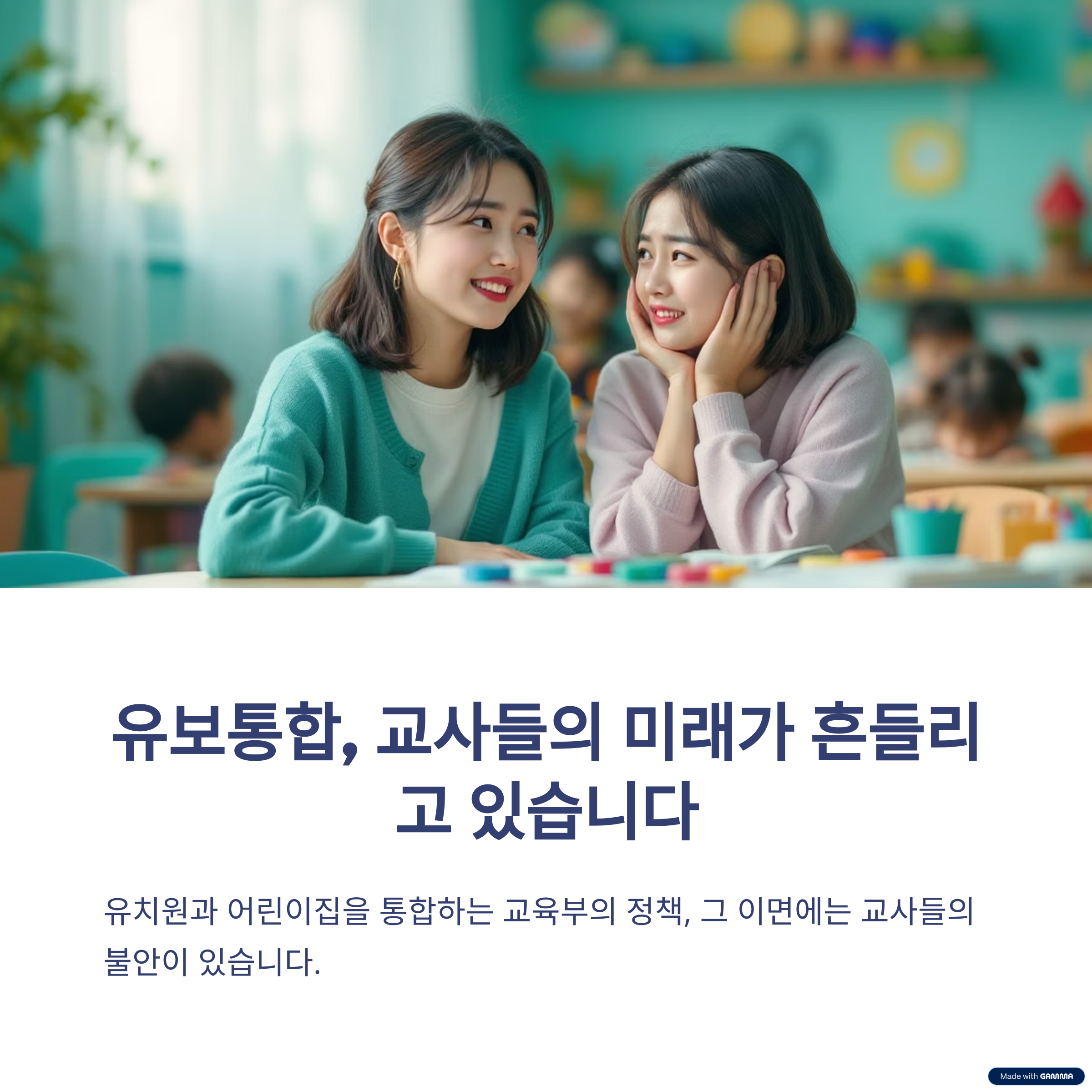 유치원과 어린이집의 통합 과정에 따른 교사들의 현실적인 문제를 다루겠습니다.