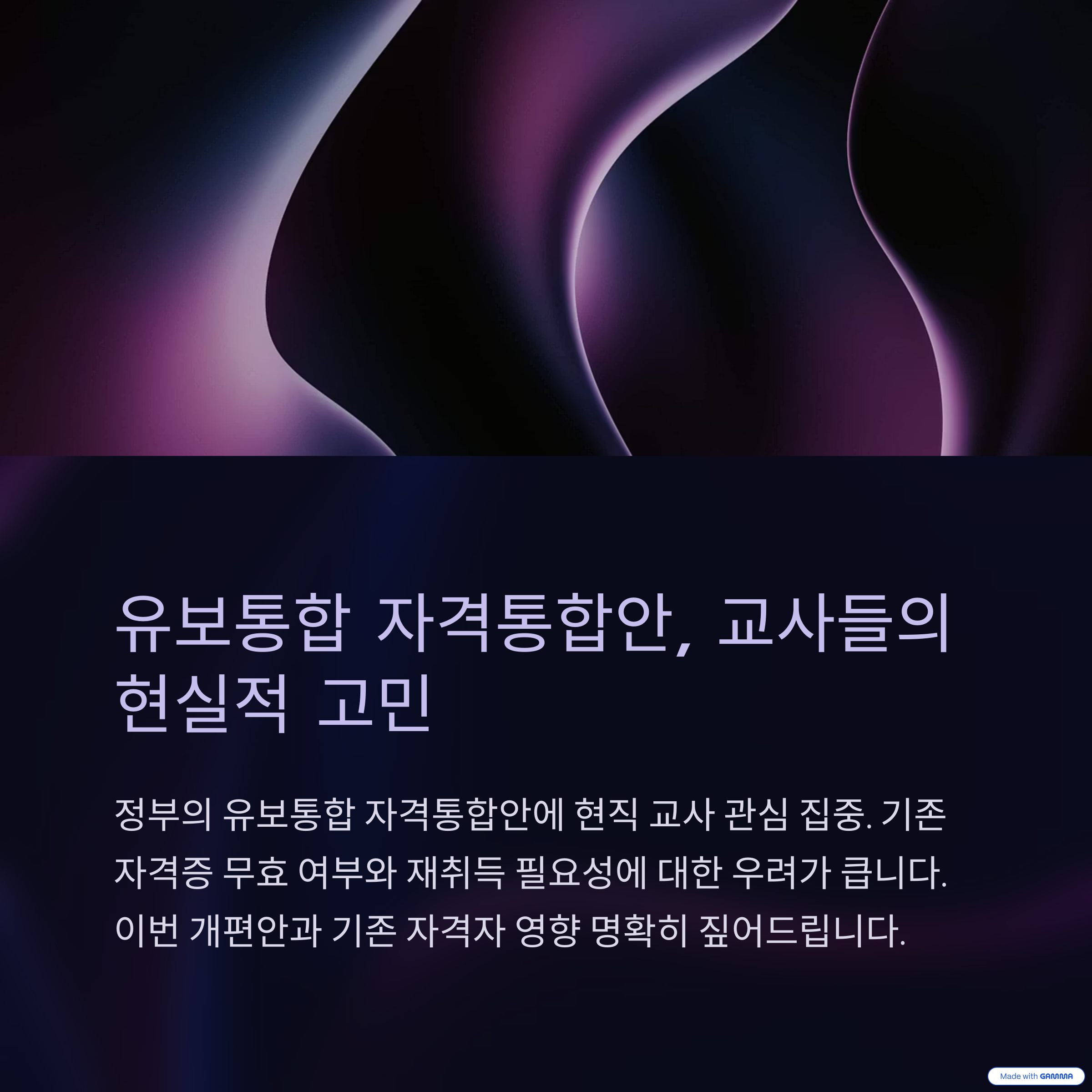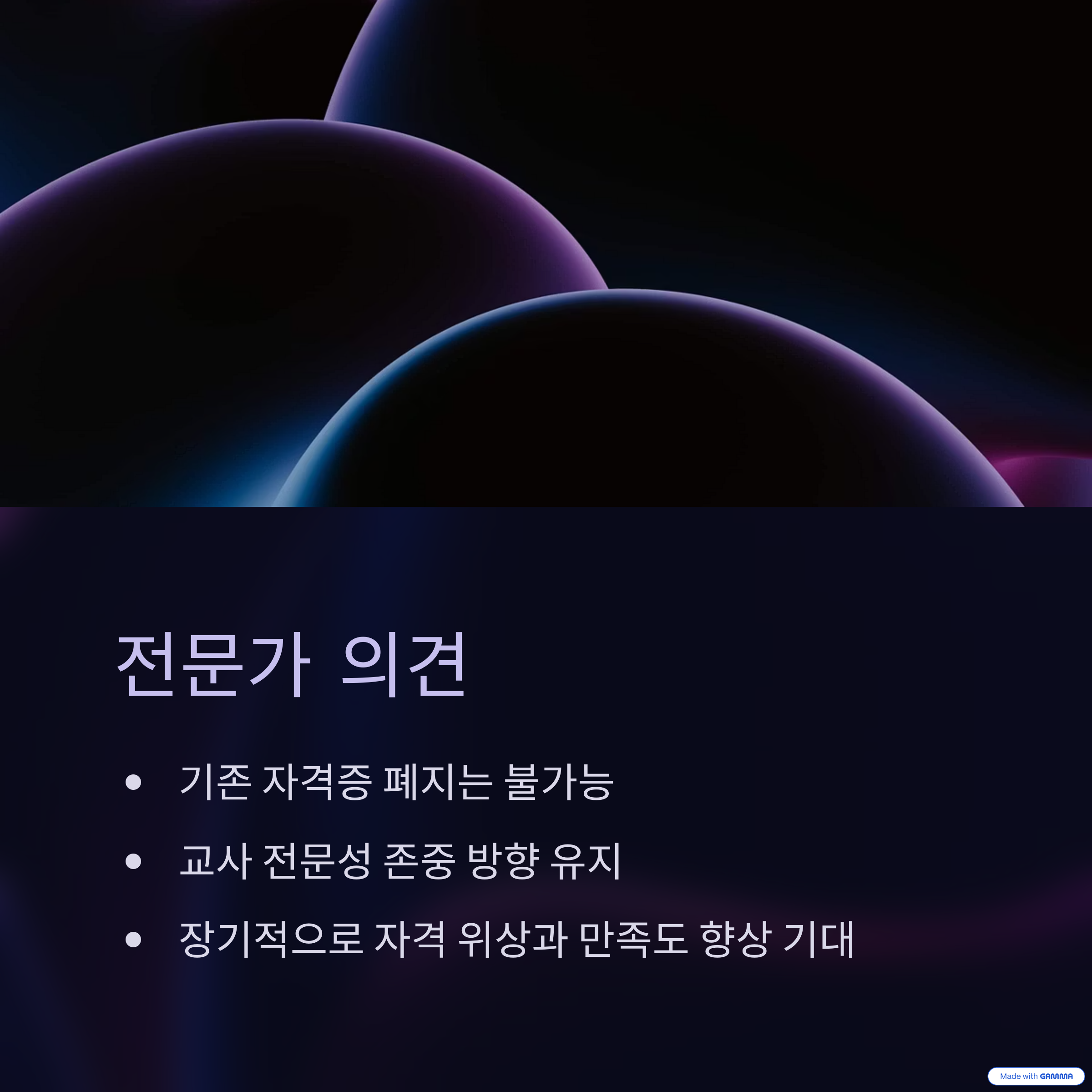 "현재의 자격증을 폐지하는 방식은 불가능하며, 기존 교사의 전문성을 존중하는 방향으로만 가야 한다"는 게