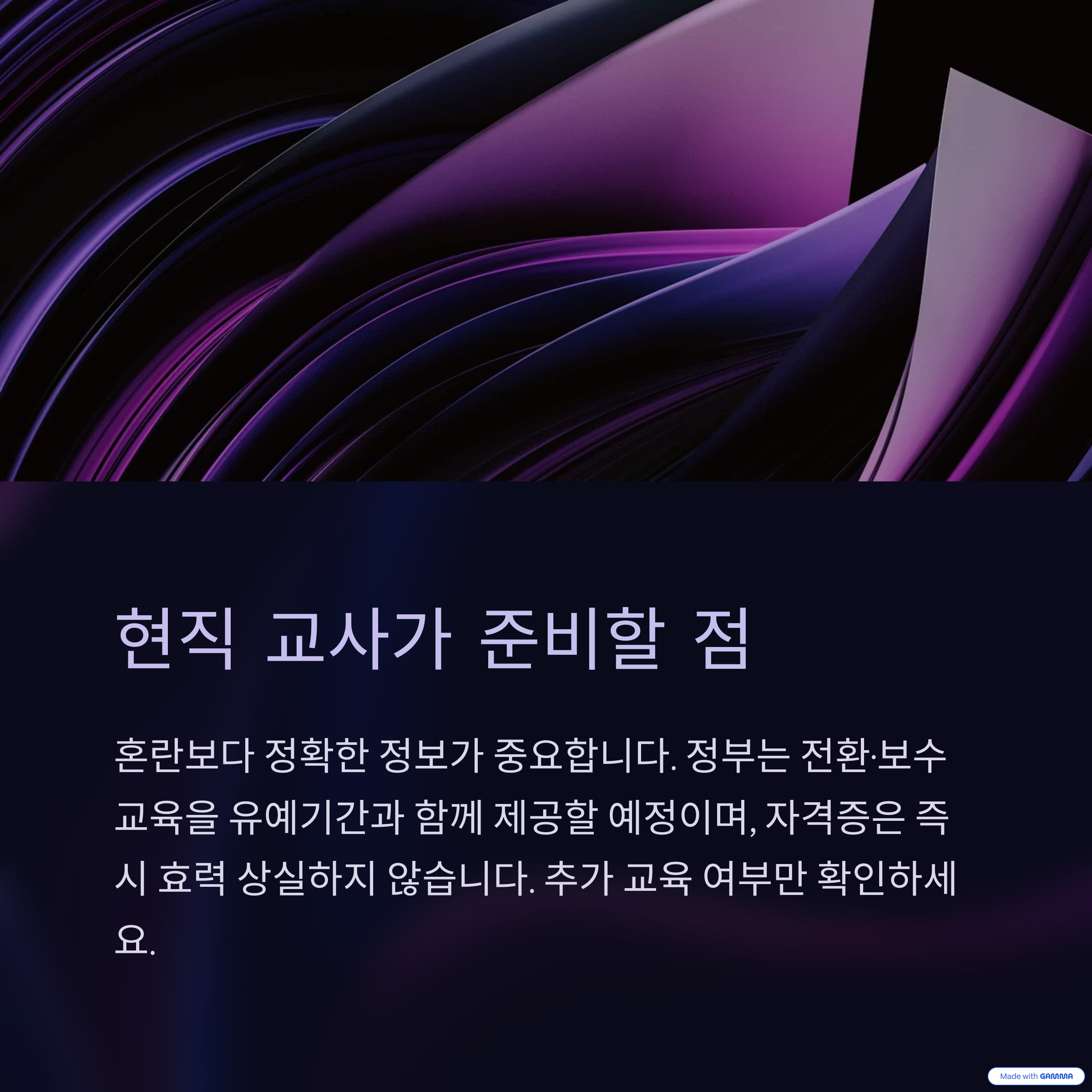 향후 제도 변경에 따라 추가 교육 이수 여부만 확인하면 됩니다.