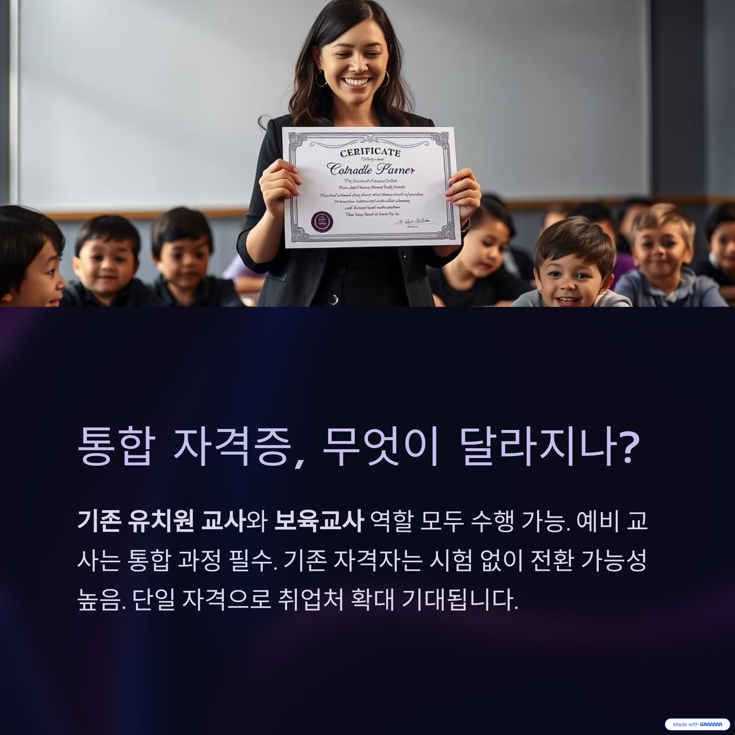 앞으로 도입될 자격증은 유치원 교사와 보육교사의 역할을 모두 수행할 수 있도록 설계됩니다.