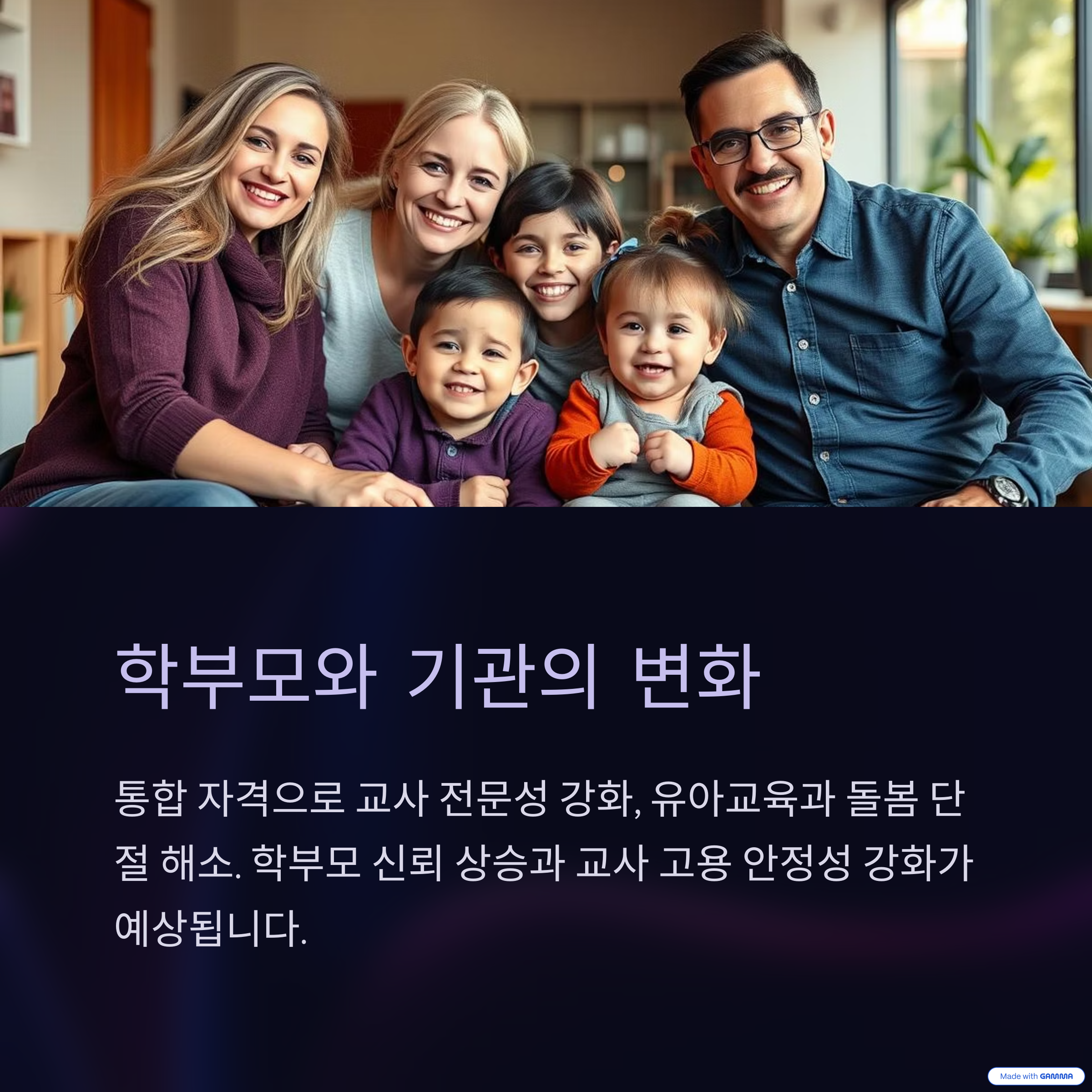 또한 교사가 통합 자격을 갖추게 되면, 유아교육과 돌봄이 단절 없이 제공되는 환경이 가능해지므로